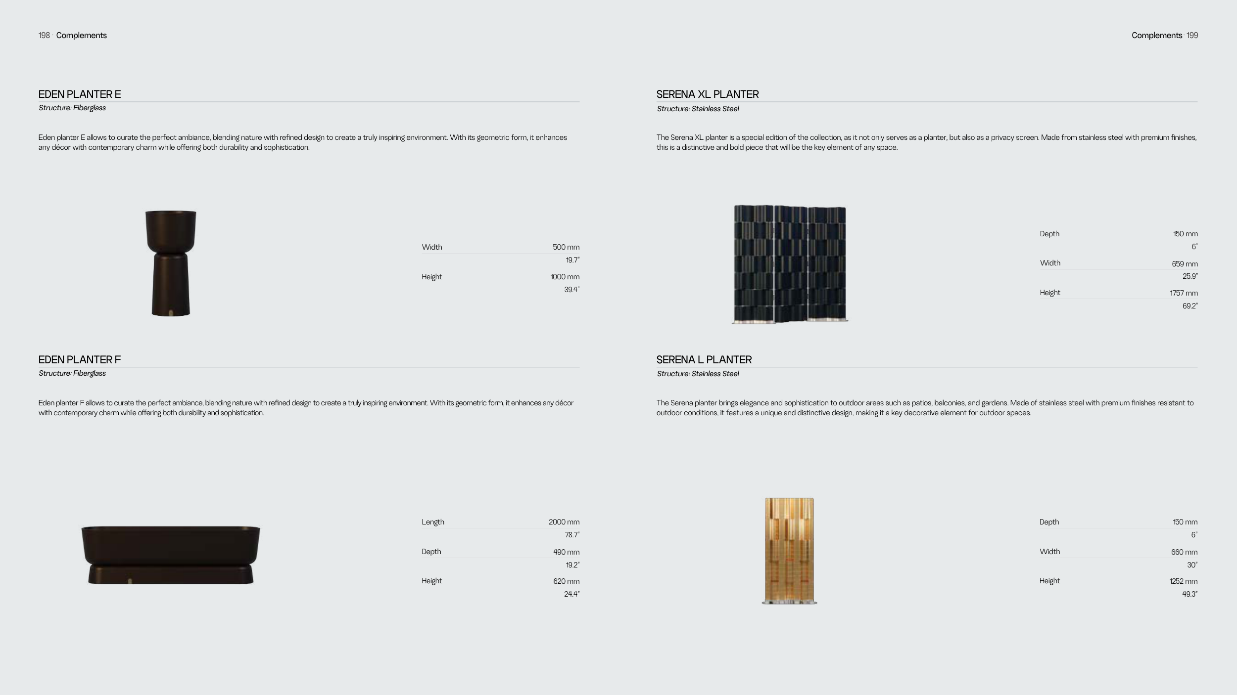 The Serena XL planter is a special edition of the collection, as it not only serves as a planter, but also as a privacy screen. Made from stainless steel with premium finishes,