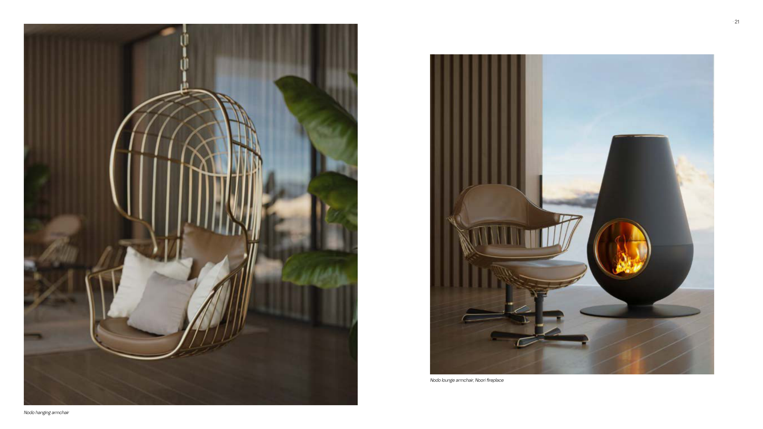 Nodo lounge armchair, Noori fireplace