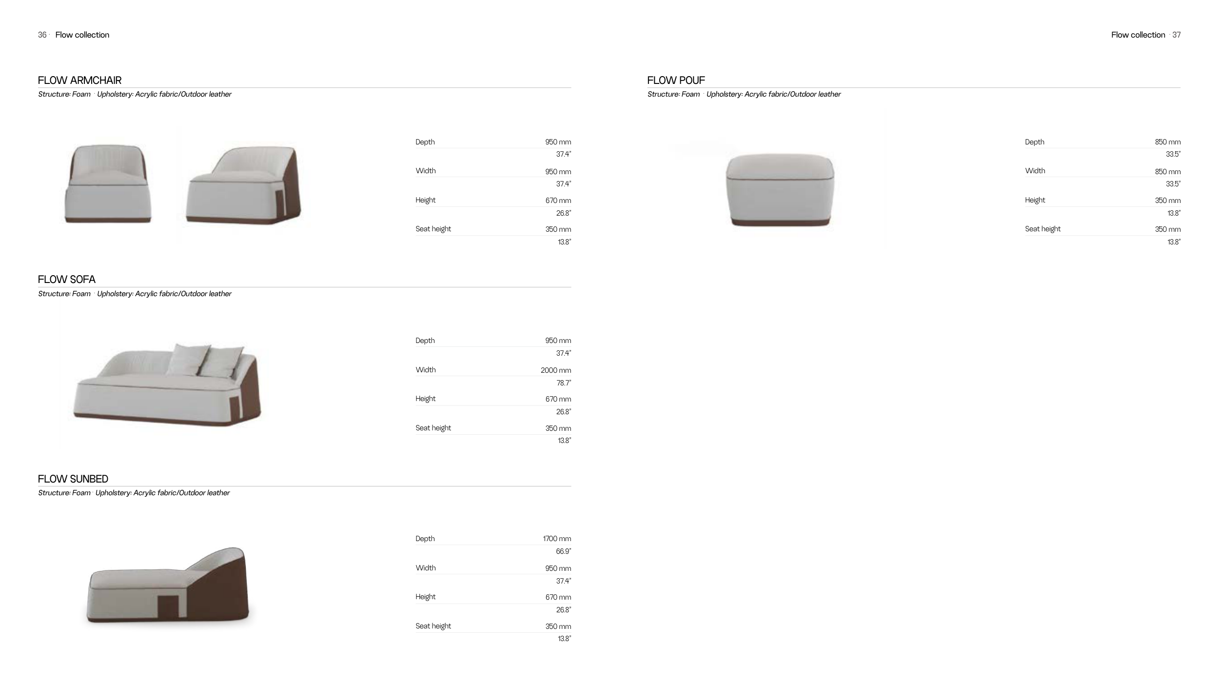 Structure: Foam · Upholstery: Acrylic fabric/Outdoor leather