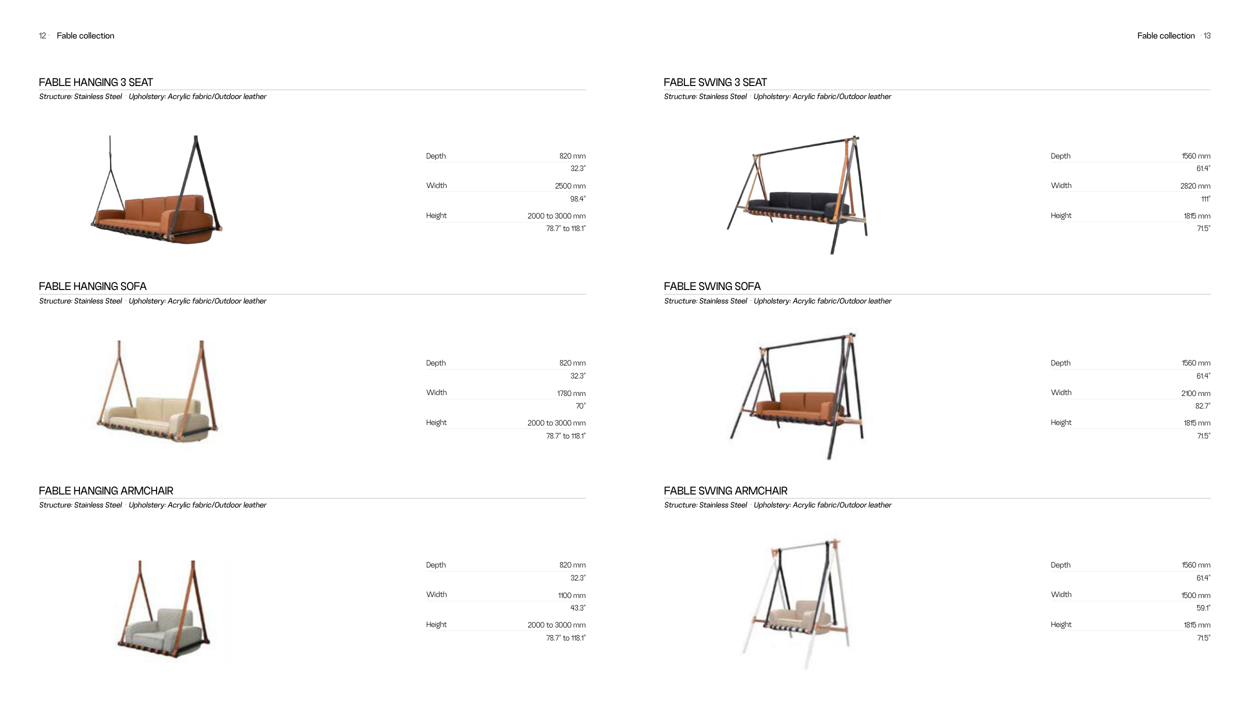 Structure: Stainless Steel · Upholstery: Acrylic fabric/Outdoor leather
