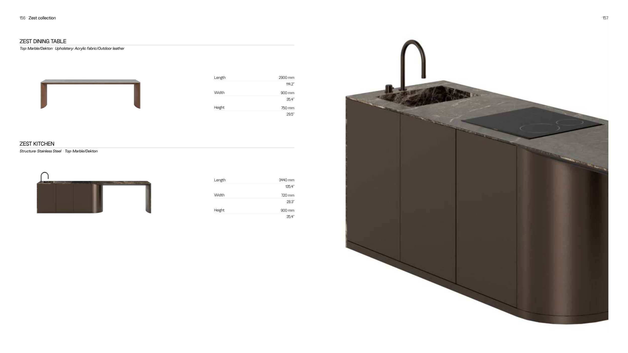 Top: Marble/Dekton · Upholstery: Acrylic fabric/Outdoor leather