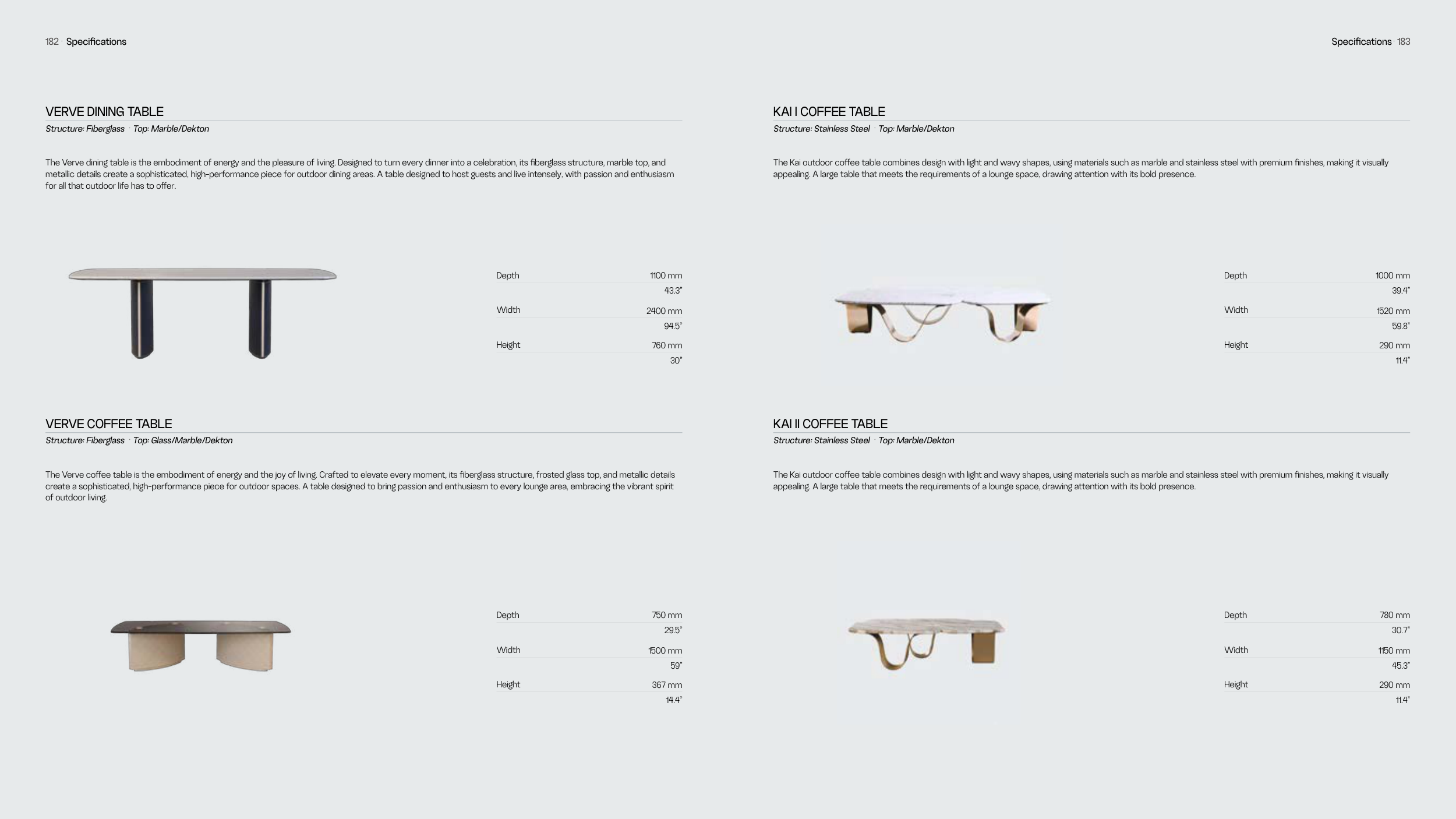 Structure: Stainless Steel · Top: Marble/Dekton