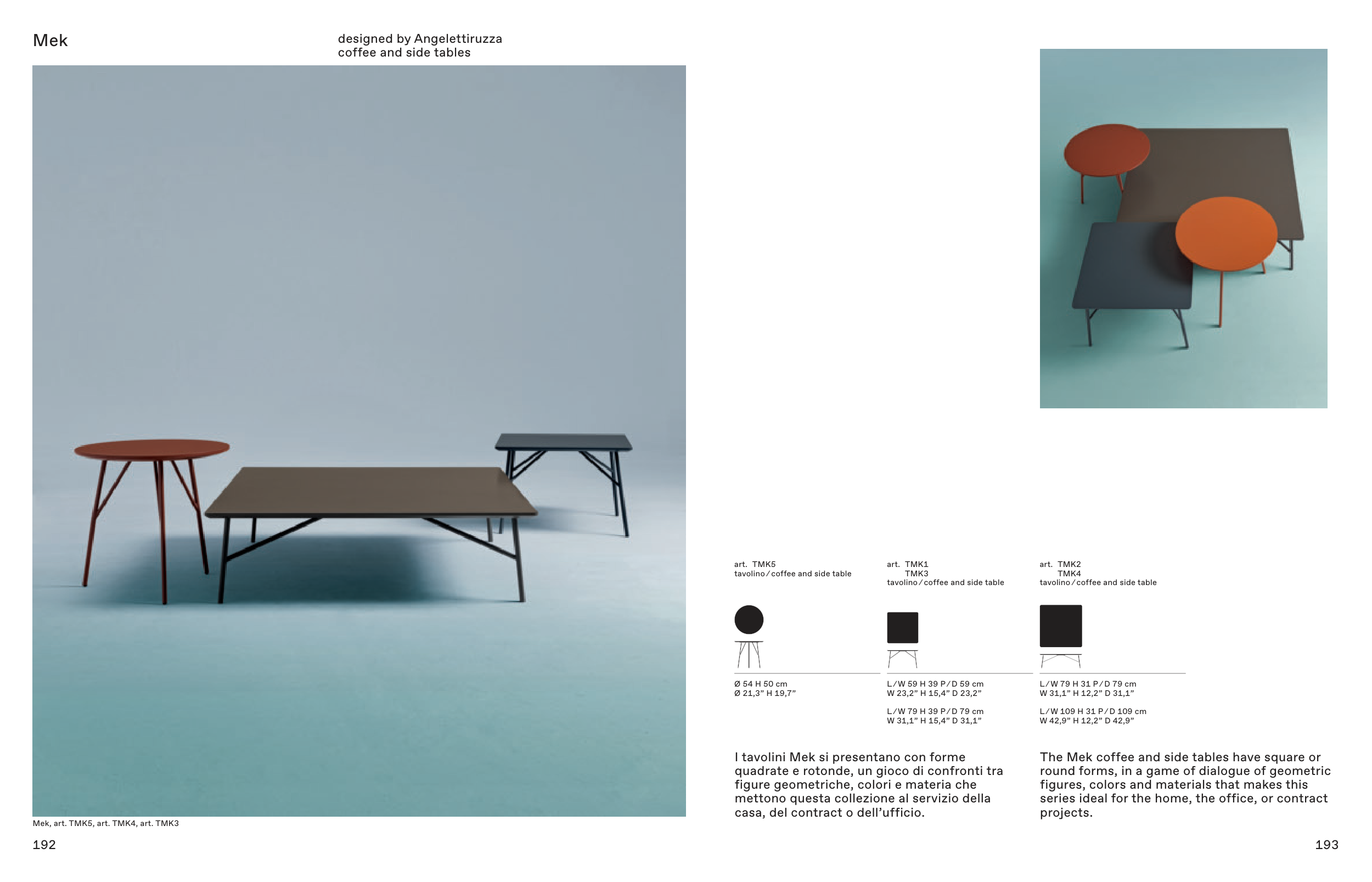 The Mek coffee and side tables have square or