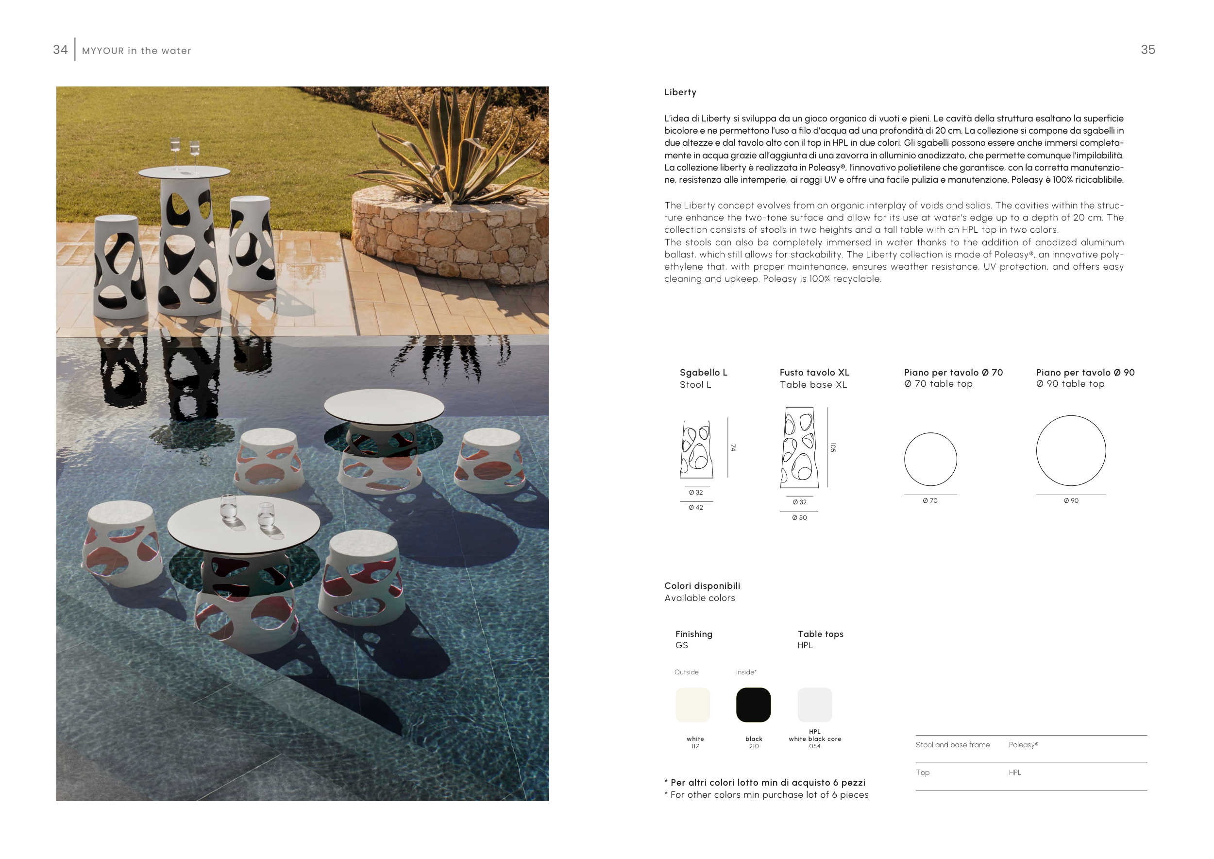 La collezione liberty è realizzata in Poleasy®, l’innovativo polietilene che garantisce, con la corretta manutenzio-
