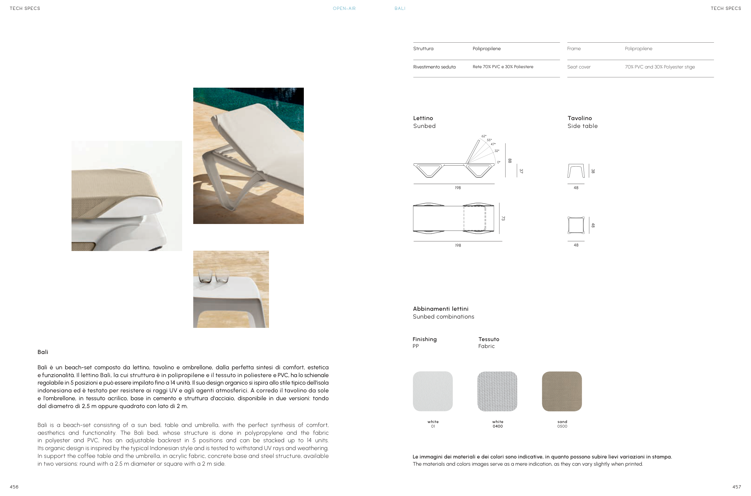 The materials and colors images serve as a mere indication, as they can vary slightly when printed.