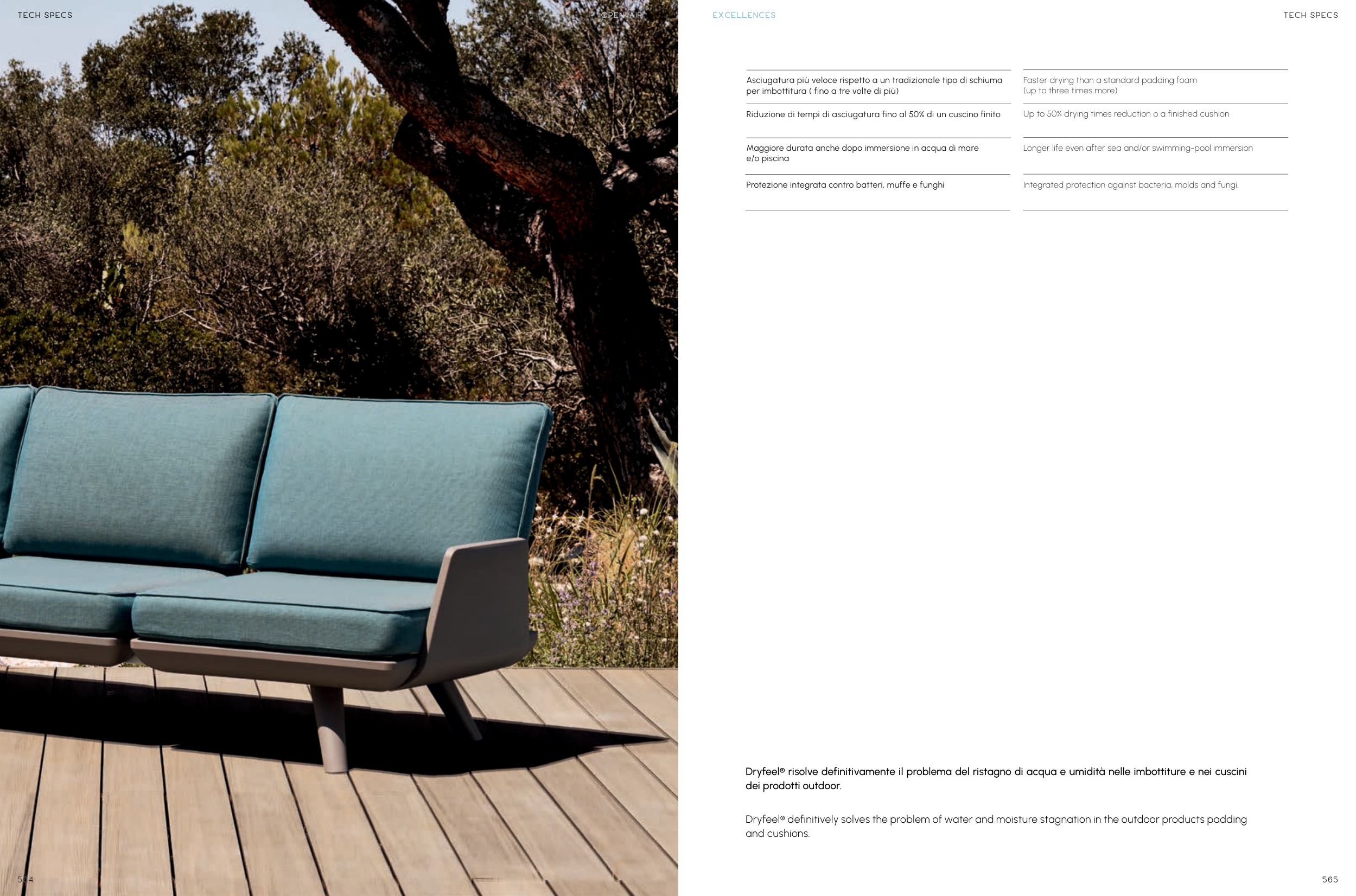 Dryfeel® risolve definitivamente il problema del ristagno di acqua e umidità nelle imbottiture e nei cuscini