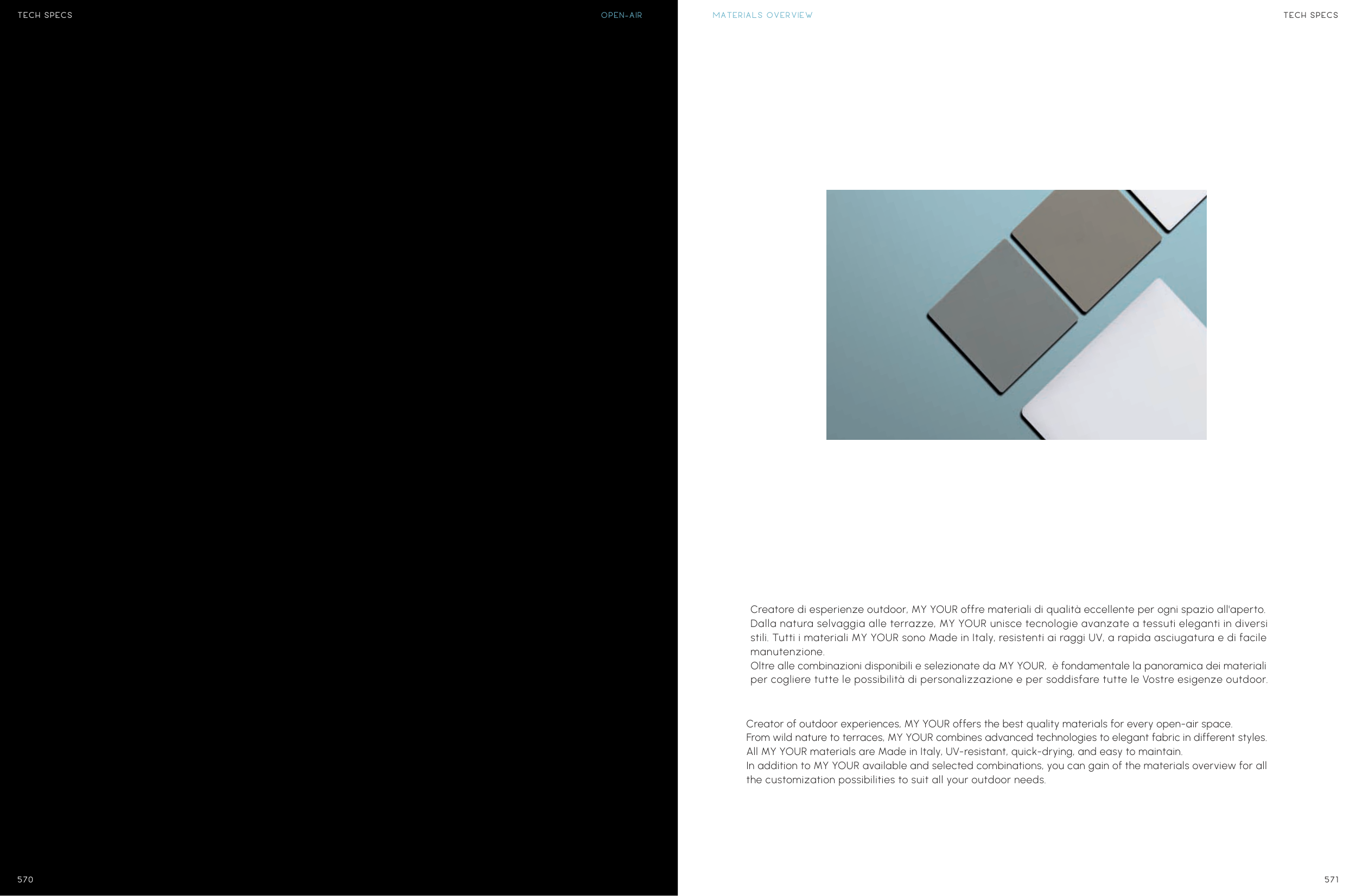 All MY YOUR materials are Made in Italy, UV-resistant, quick-drying, and easy to maintain.