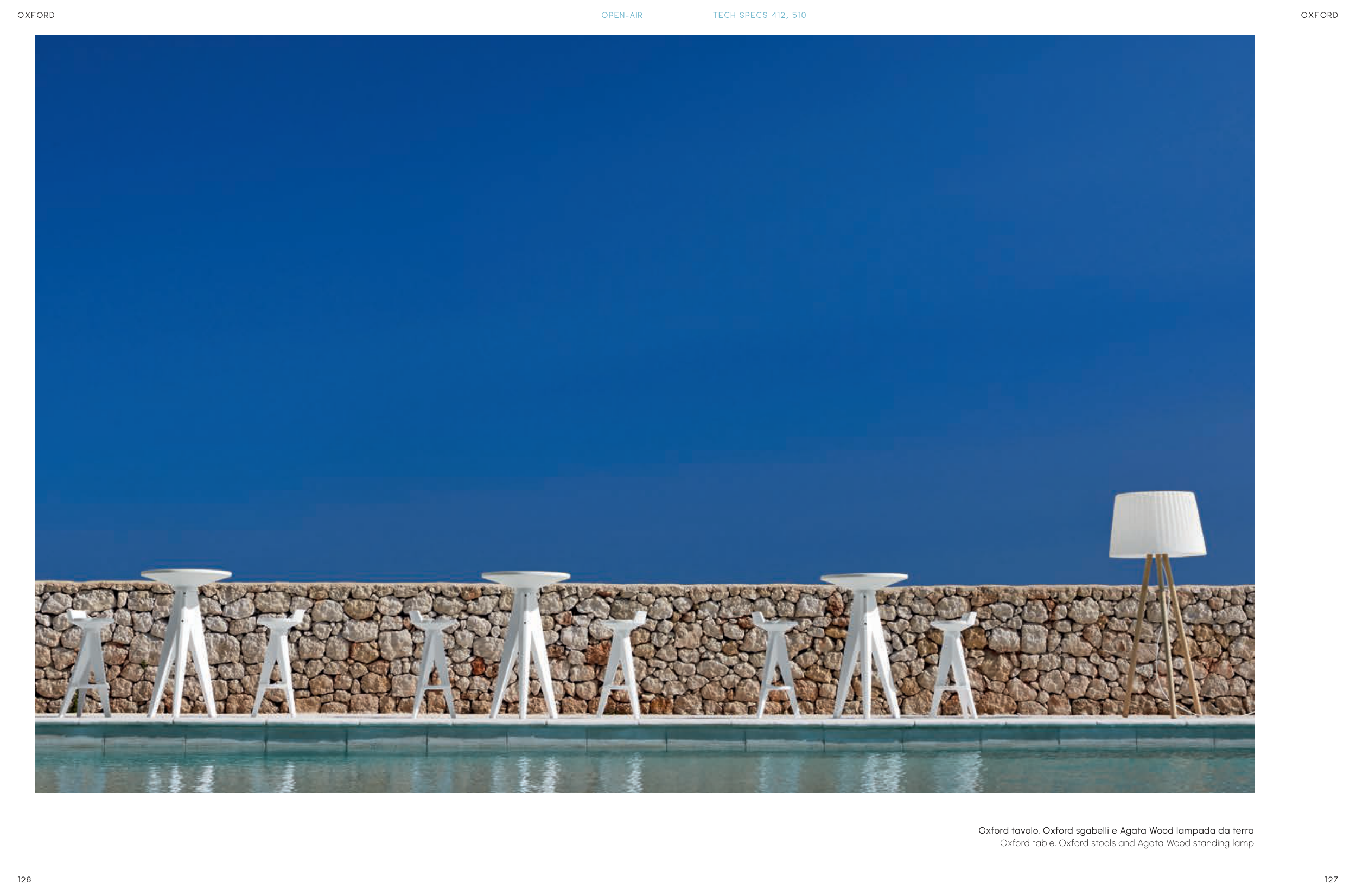 Oxford tavolo, Oxford sgabelli e Agata Wood lampada da terra