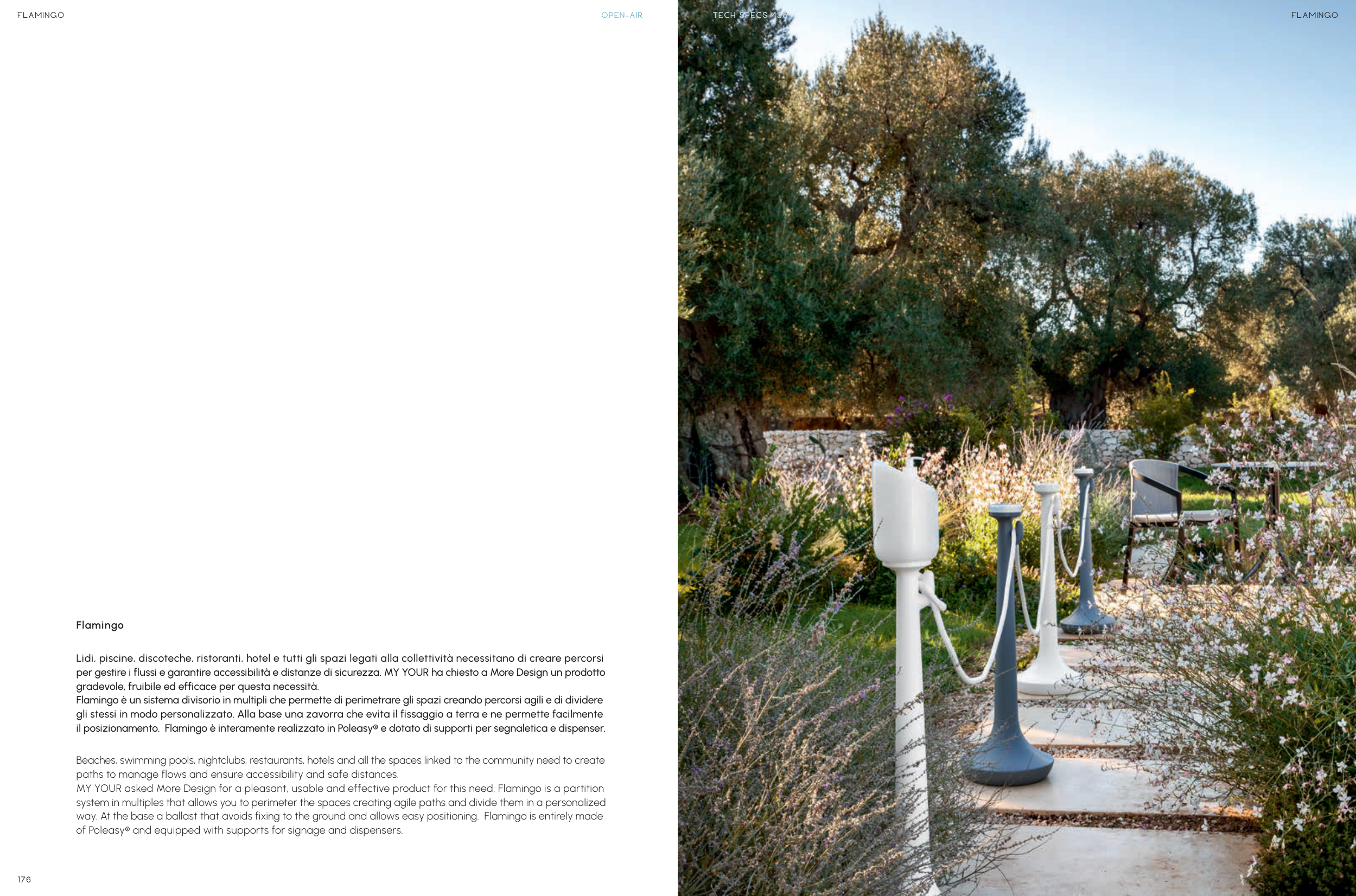il posizionamento. Flamingo è interamente realizzato in Poleasy® e dotato di supporti per segnaletica e dispenser.