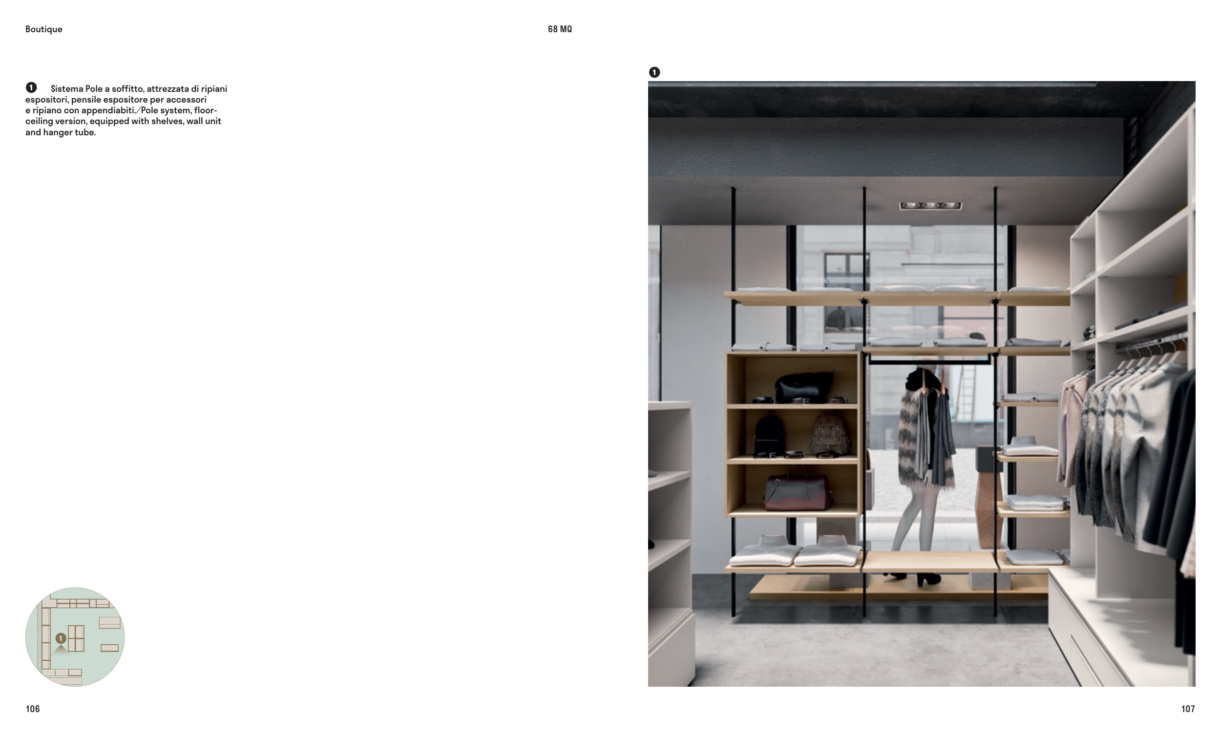 e ripiano con appendiabiti. ⁄ Pole system, floor-