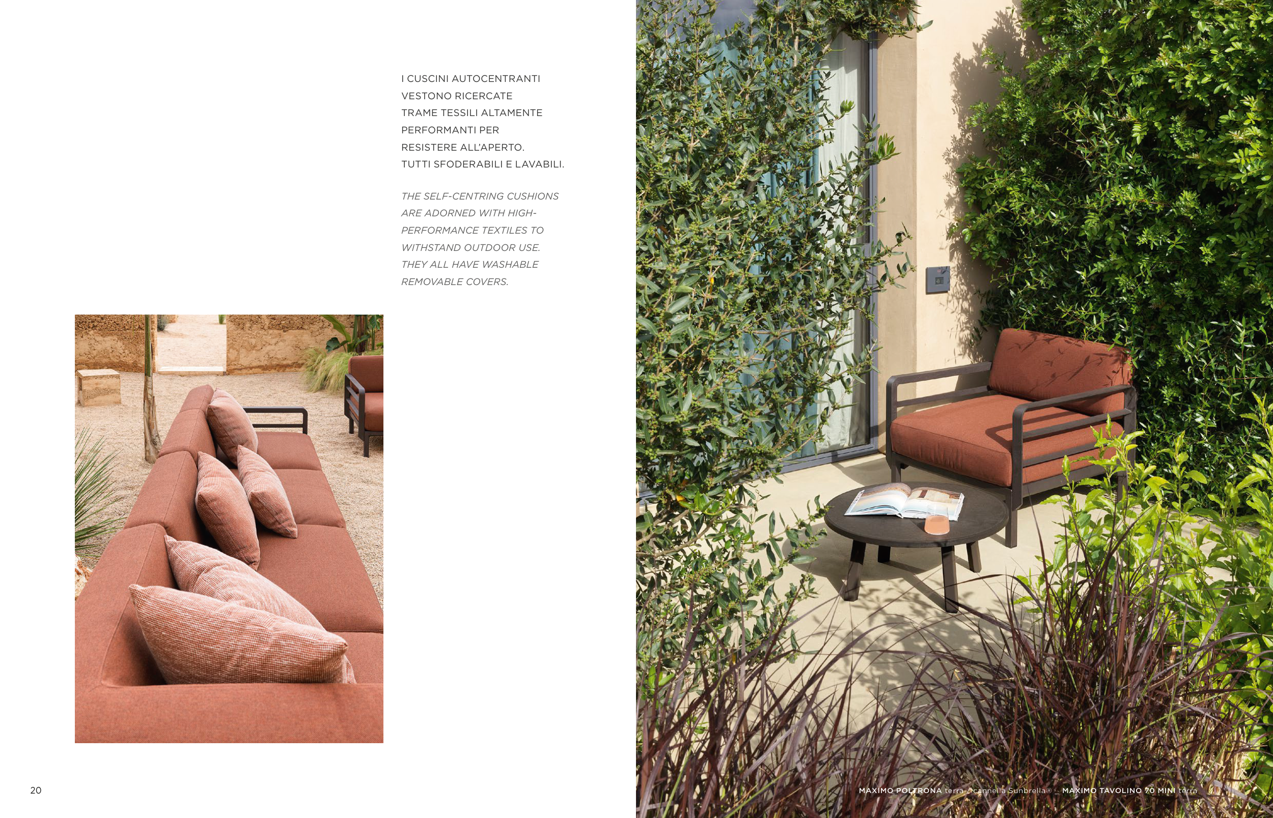 MAXIMO POLTRONA terra / cannella Sunbrella® _ MAXIMO TAVOLINO 70 MINI terra