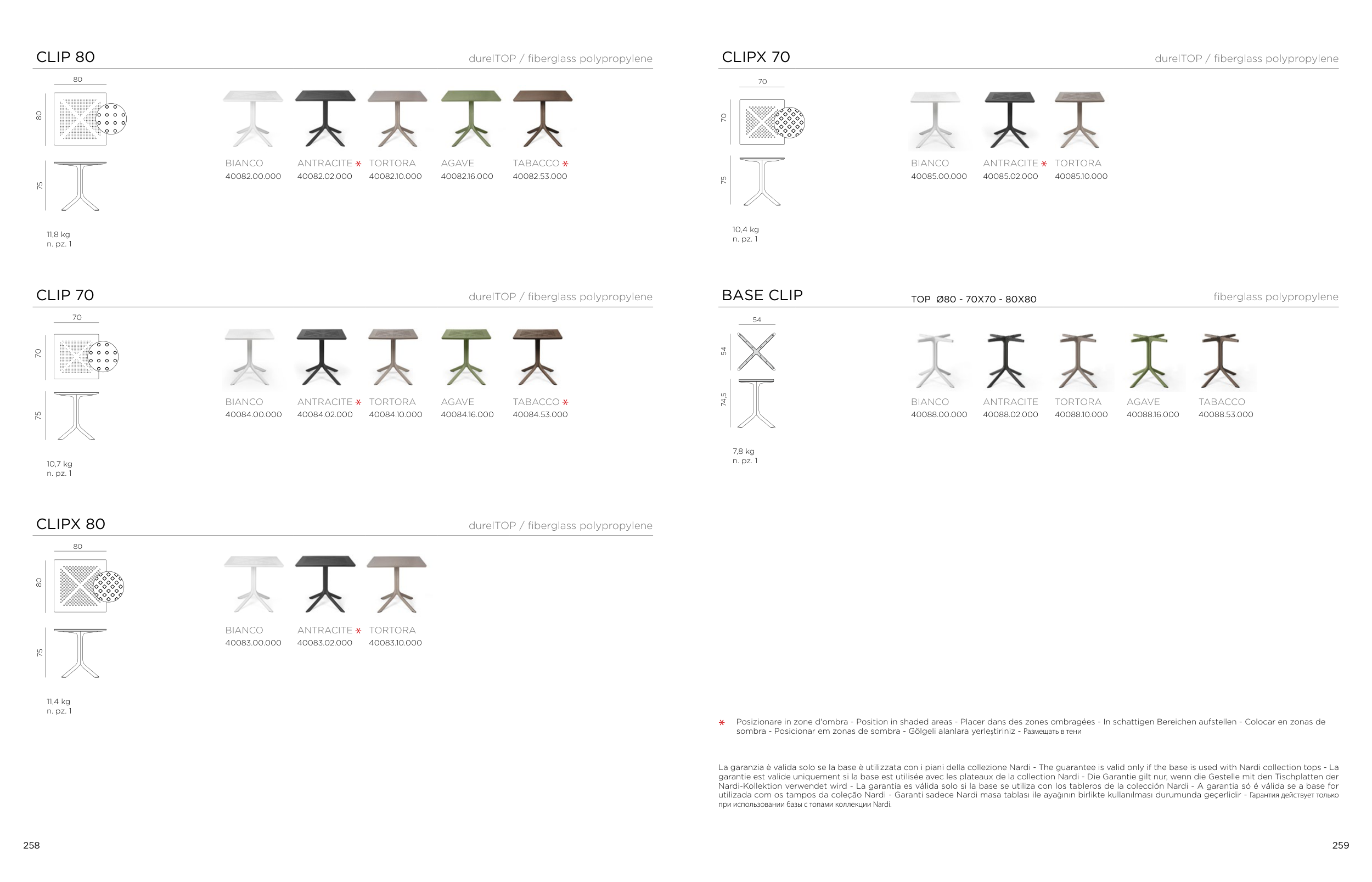 utilizada com os tampos da coleção Nardi - Garanti sadece Nardi masa tablası ile ayağının birlikte kullanılması durumunda geçerlidir - Гарантия действует только