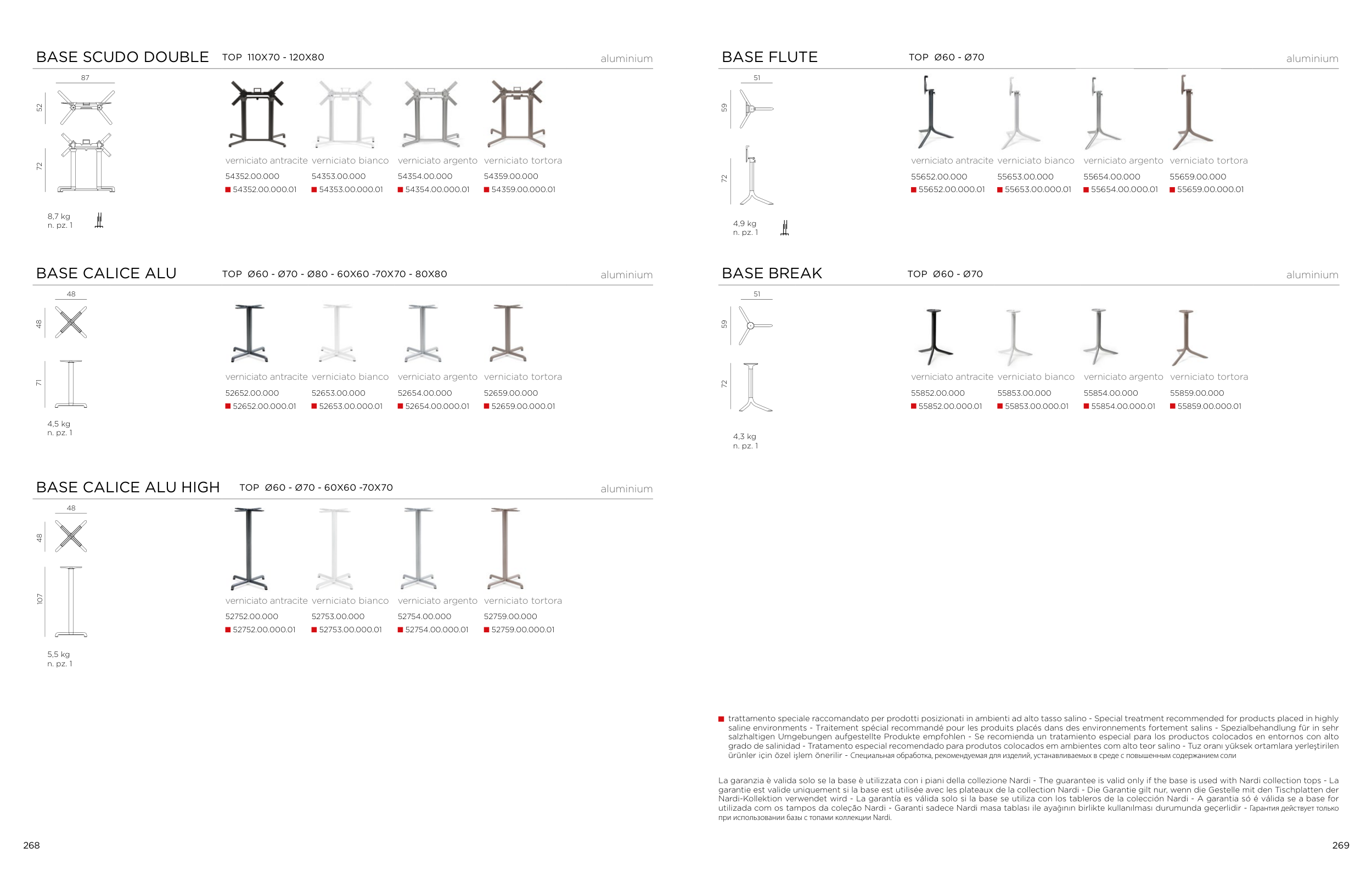 utilizada com os tampos da coleção Nardi - Garanti sadece Nardi masa tablası ile ayağının birlikte kullanılması durumunda geçerlidir - Гарантия действует только