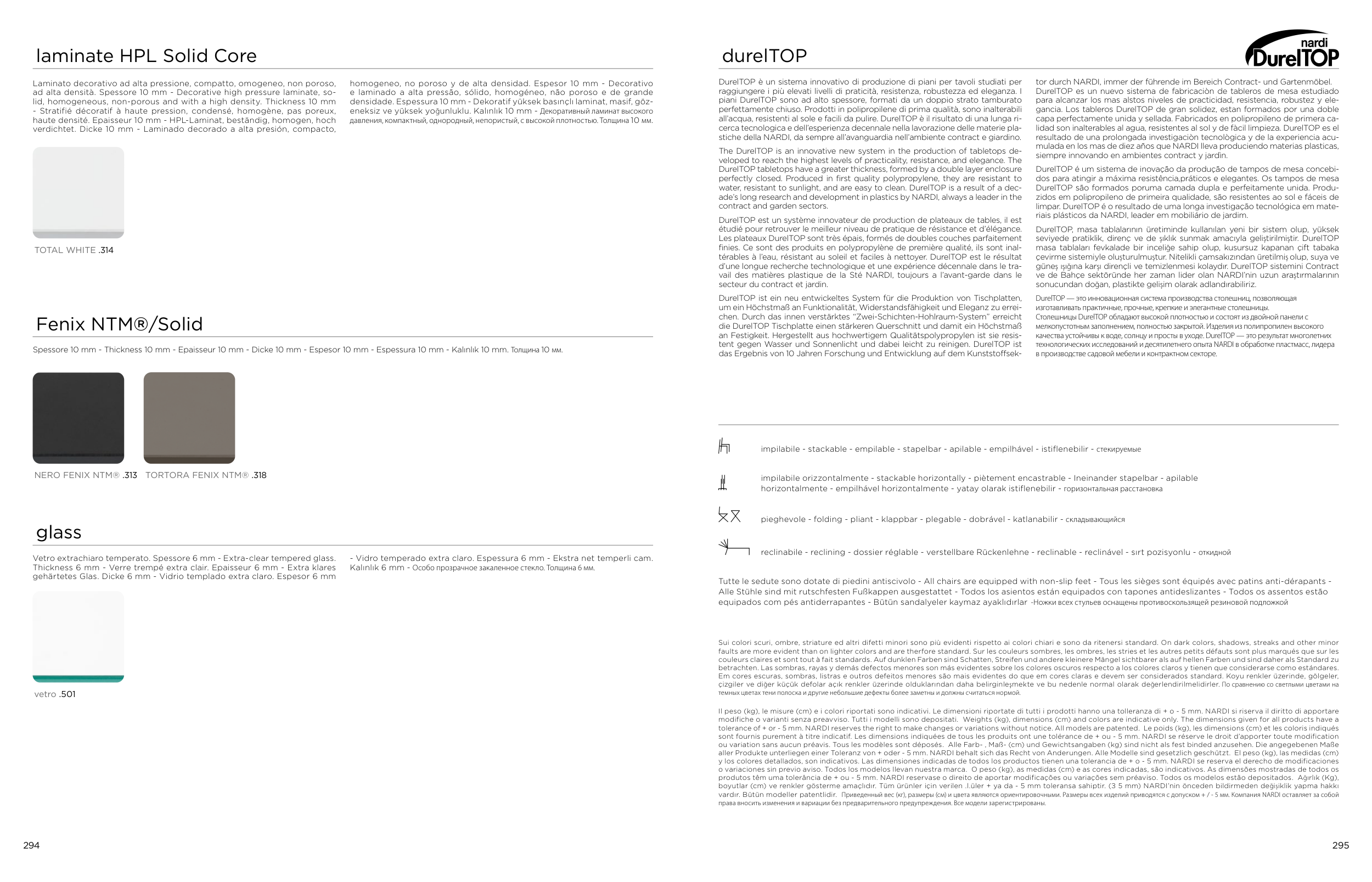 tolerance of + or - 5 mm. NARDI reserves the right to make changes or variations without notice. All models are patented. Le poids (kg), les dimensions (cm) et les coloris indiqués