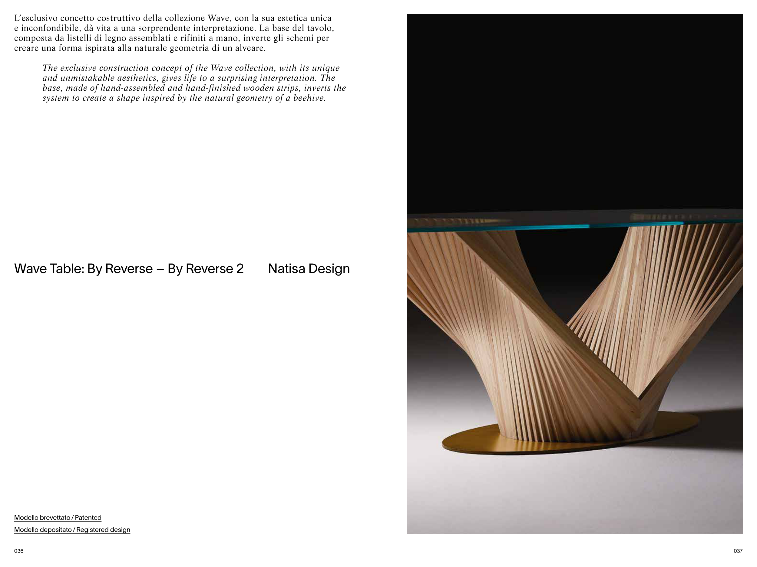 base, made of hand-assembled and hand-finished wooden strips, inverts the