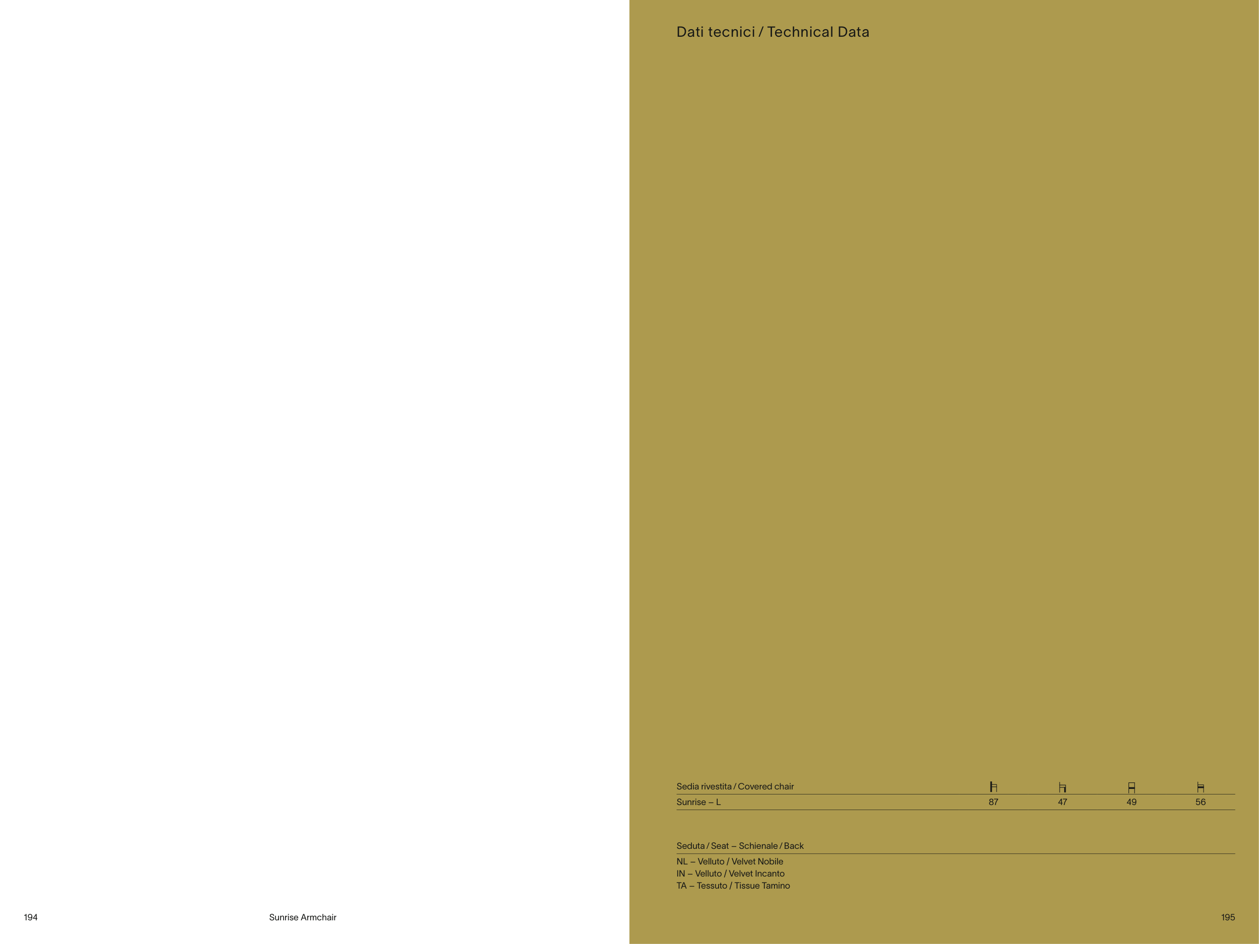 Seduta ⁄ Seat – Schienale ⁄ Back