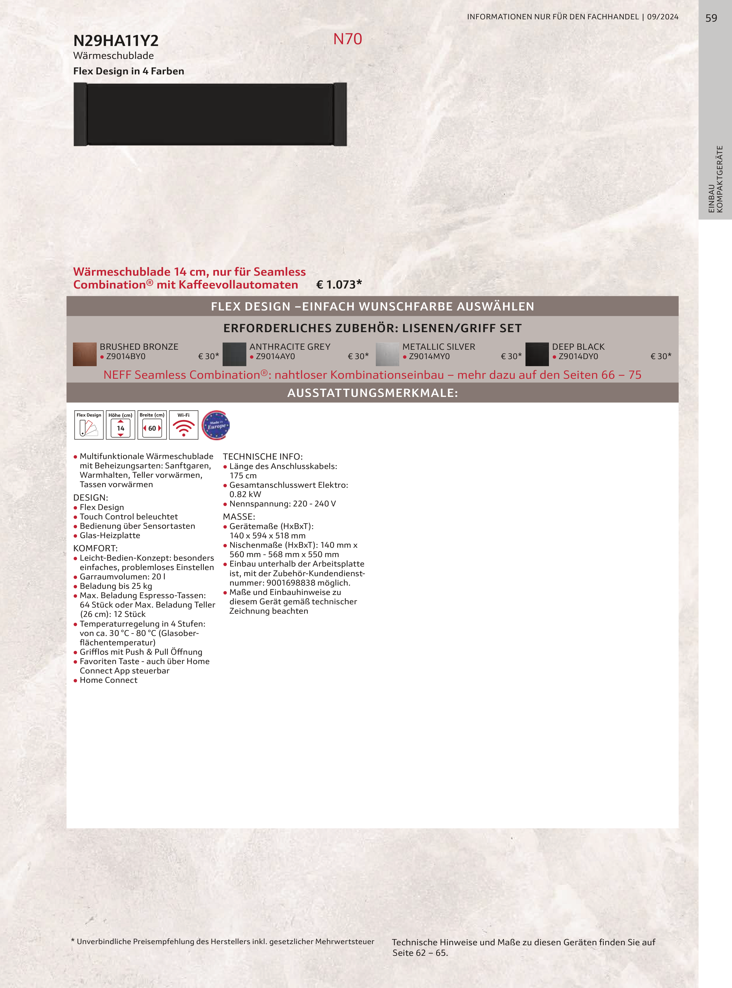 Wärmeschublade 14 cm, nur für Seamless
