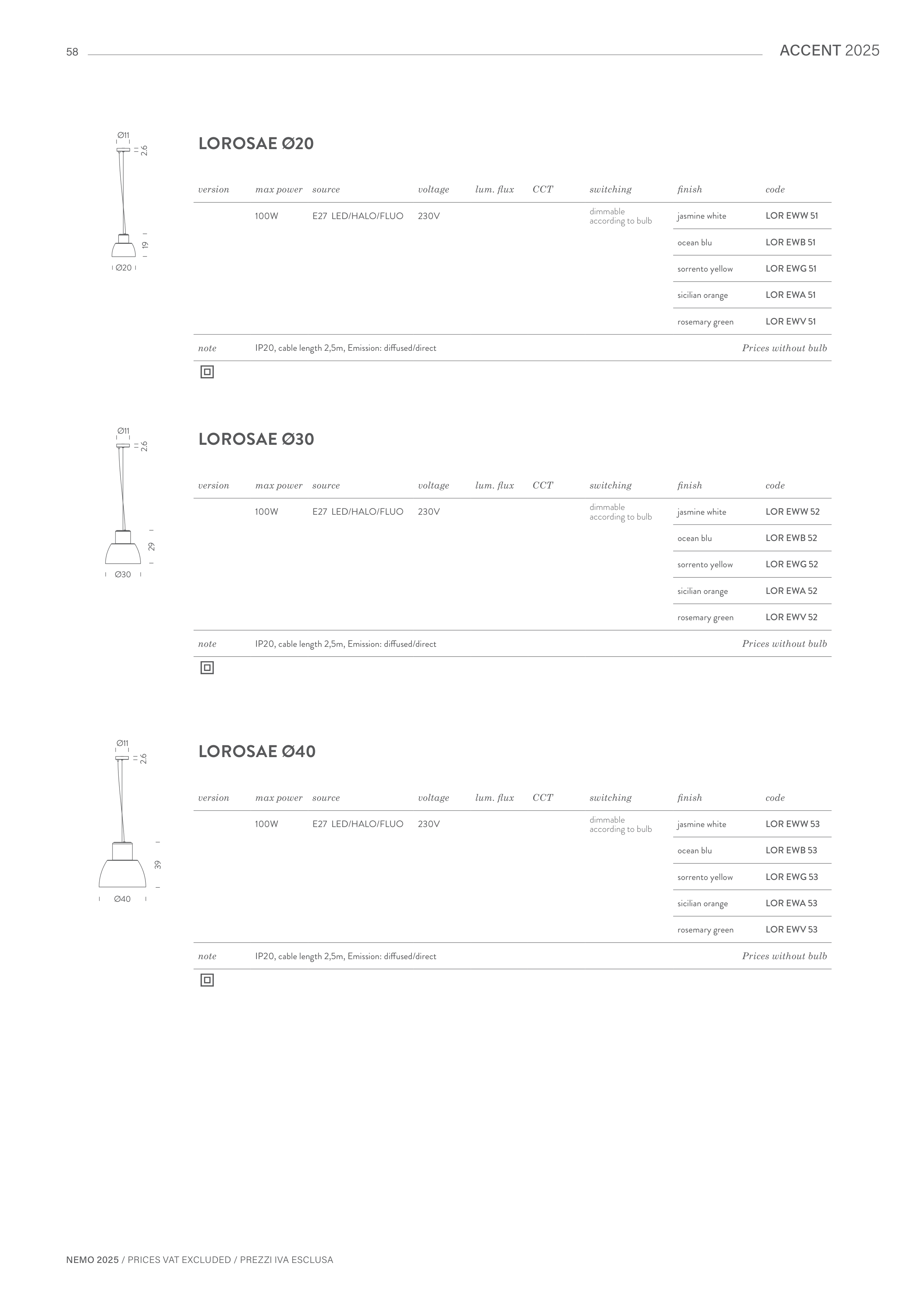 NEMO 2025 / PRICES VAT EXCLUDED / PREZZI IVA ESCLUSA