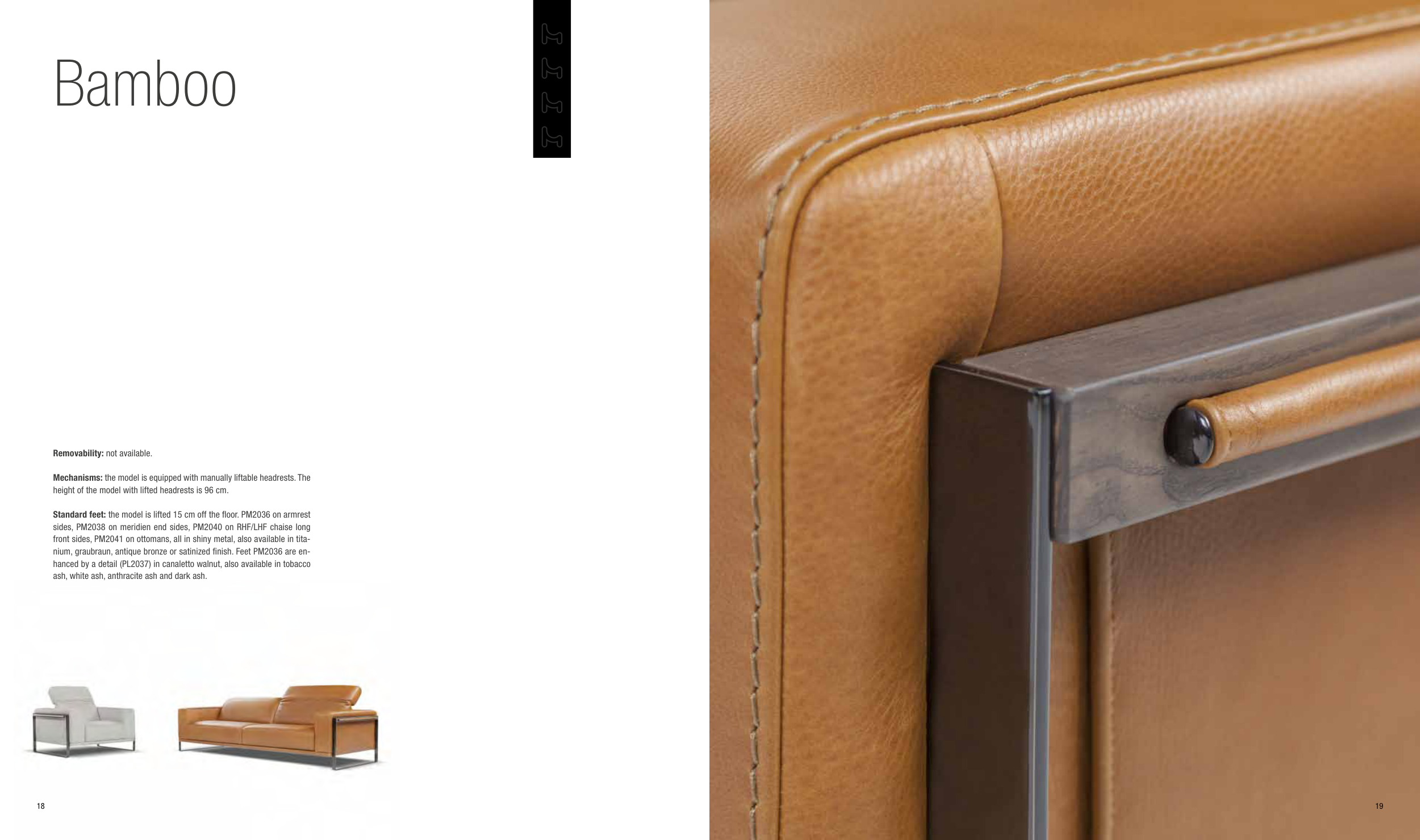 sides, PM2038 on meridien end sides, PM2040 on RHF/LHF chaise long