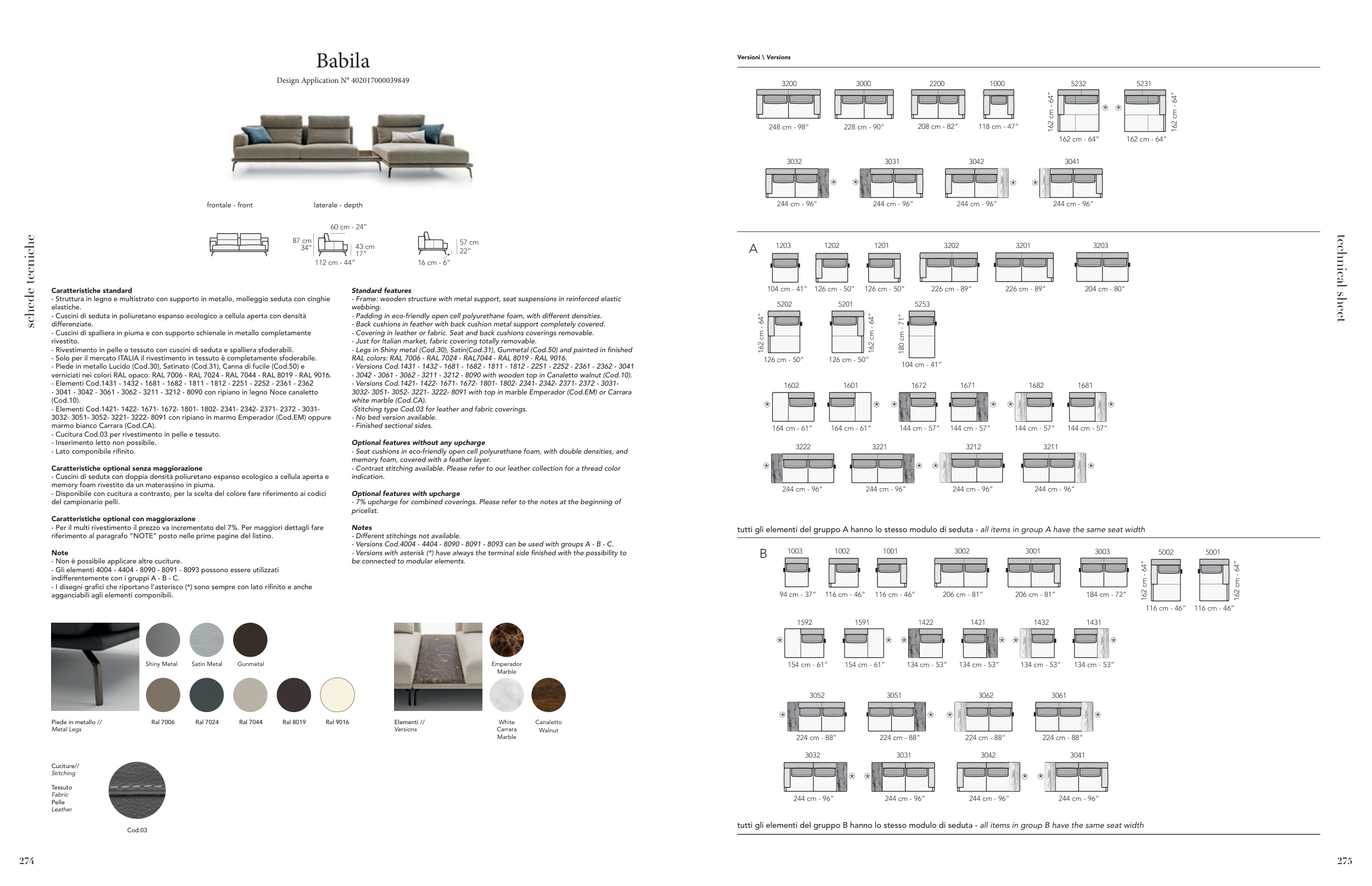 - Just for Italian market, fabric covering totally removable.