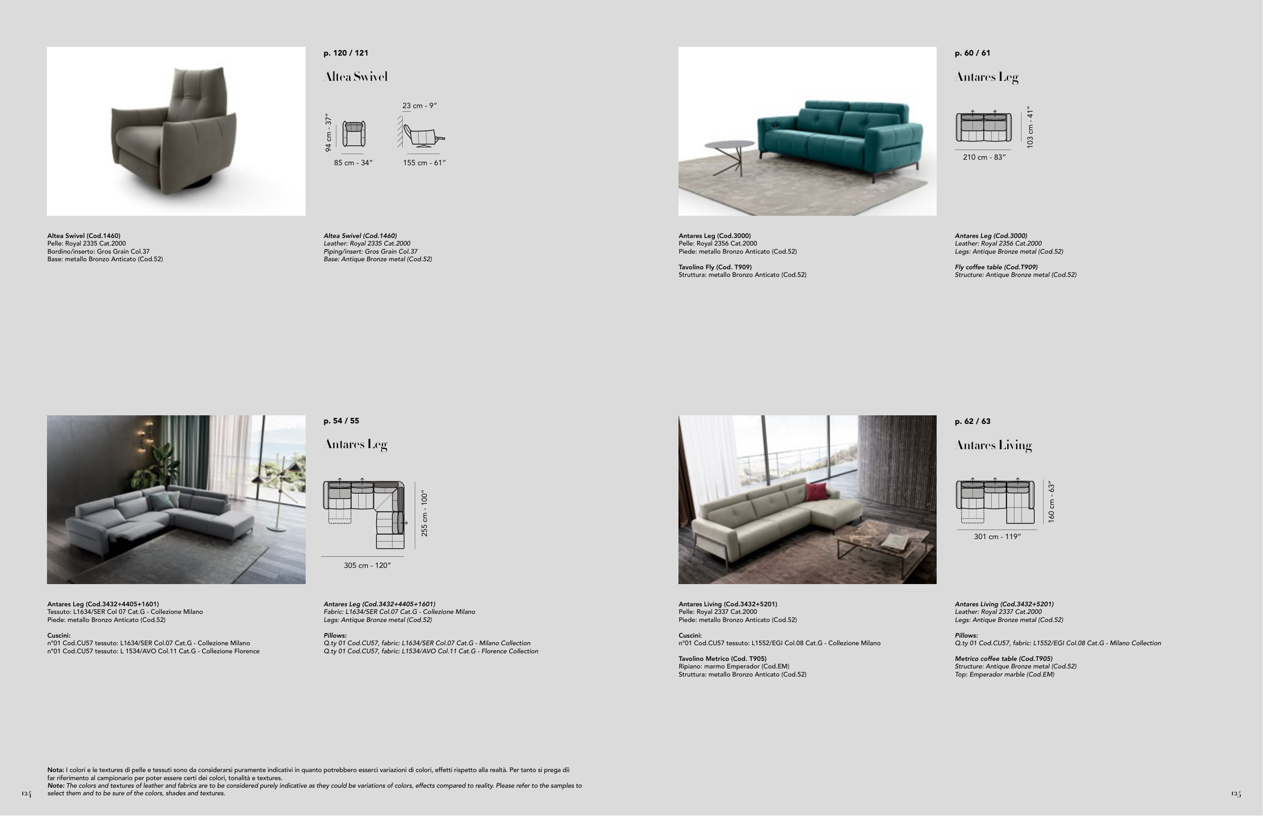 Nota: I colori e le textures di pelle e tessuti sono da considerarsi puramente indicativi in quanto potrebbero esserci variazioni di colori, effetti rispetto alla realtà. Per tanto si prega diì
