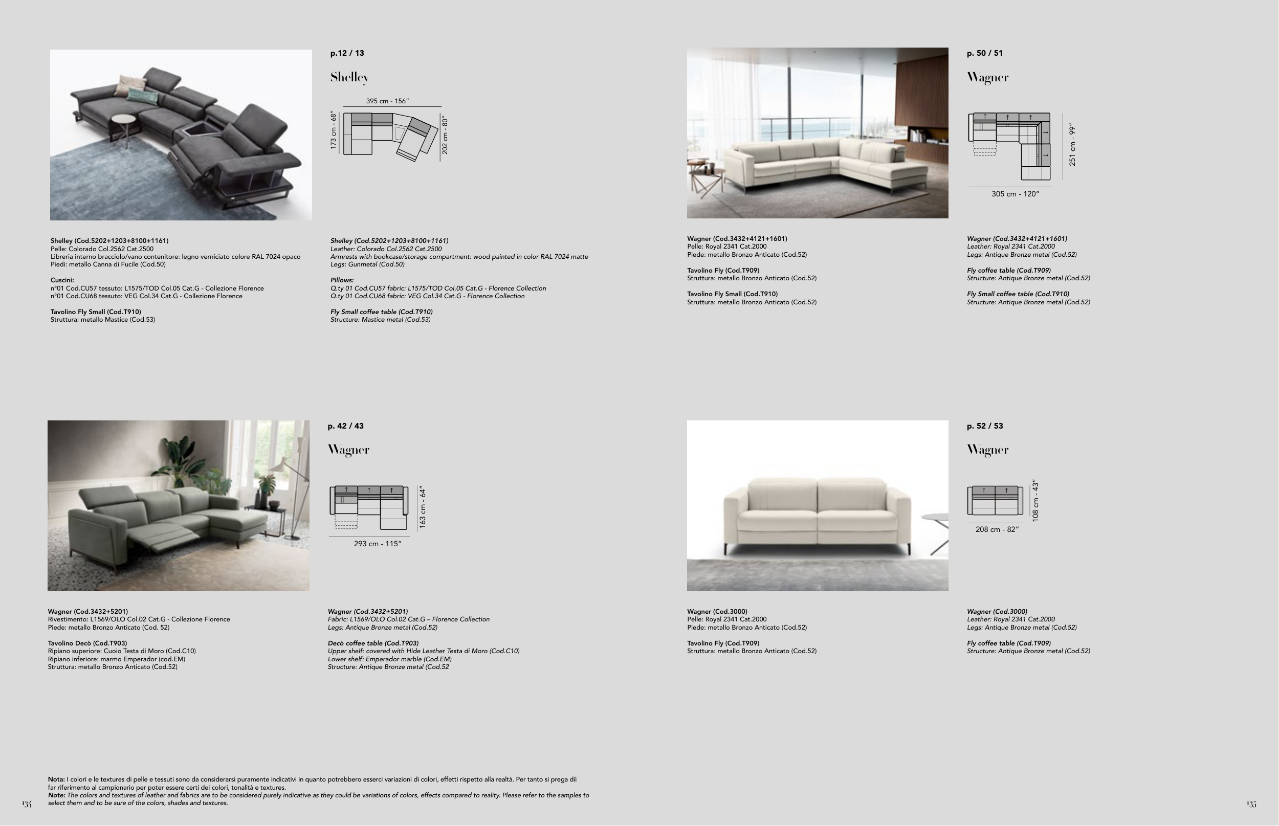 Nota: I colori e le textures di pelle e tessuti sono da considerarsi puramente indicativi in quanto potrebbero esserci variazioni di colori, effetti rispetto alla realtà. Per tanto si prega diì