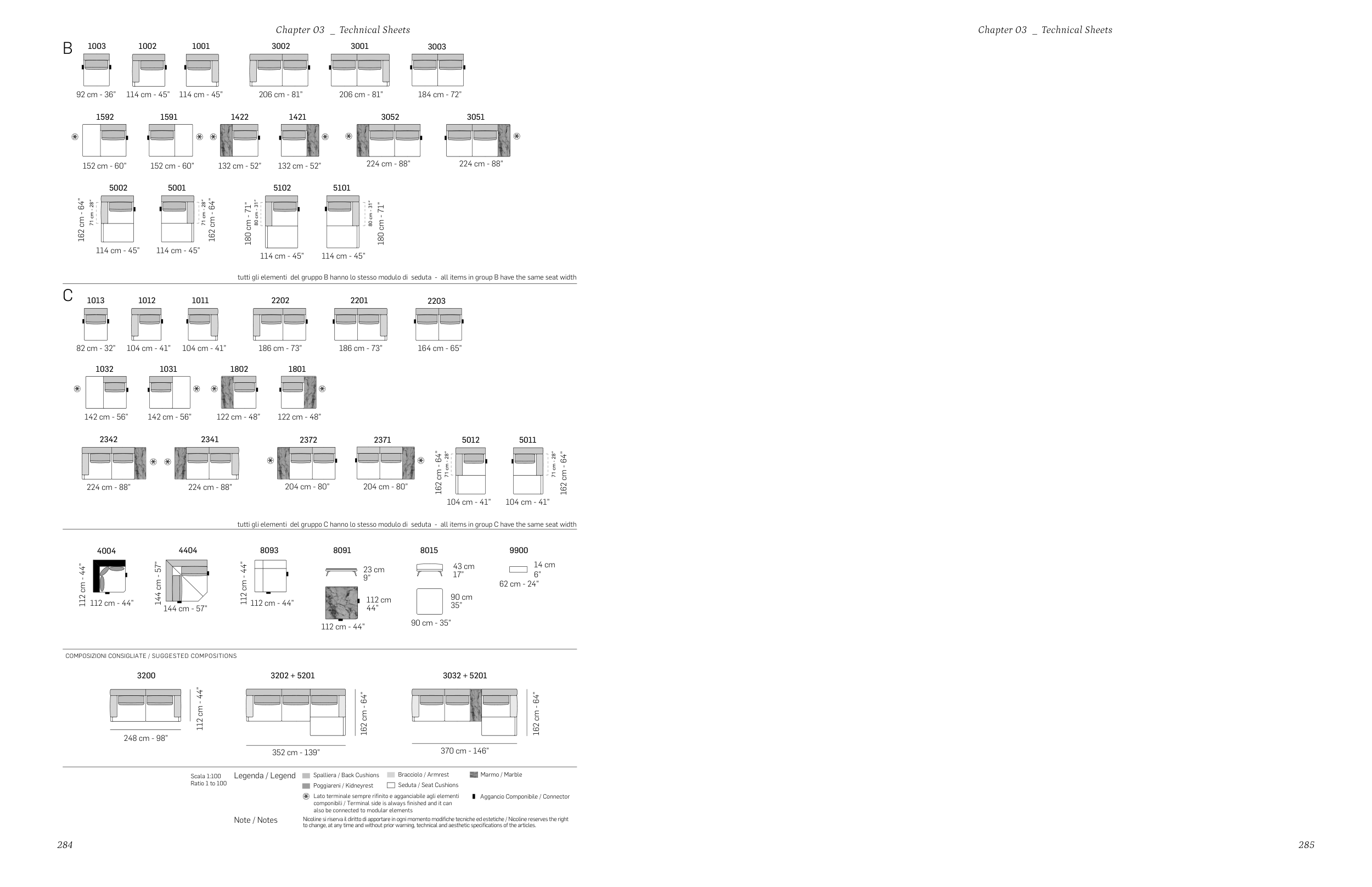 tutti gli elementi del gruppo C hanno lo stesso modulo di seduta - all items in group C have the same seat width