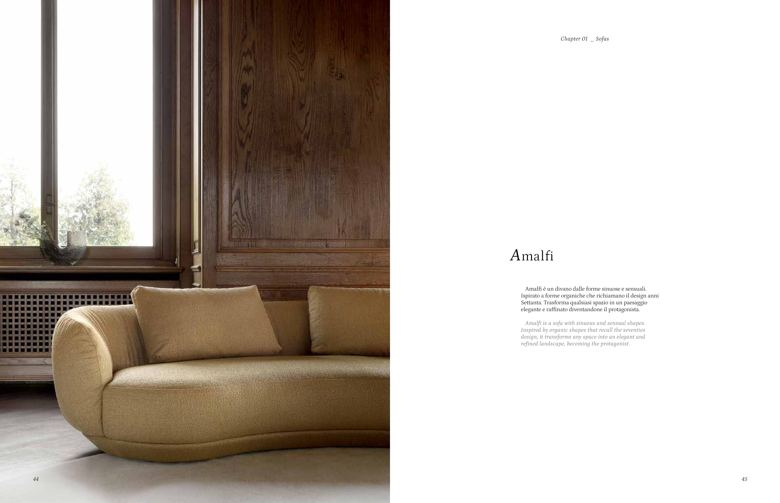 Amalfi is a sofa with sinuous and sensual shapes.