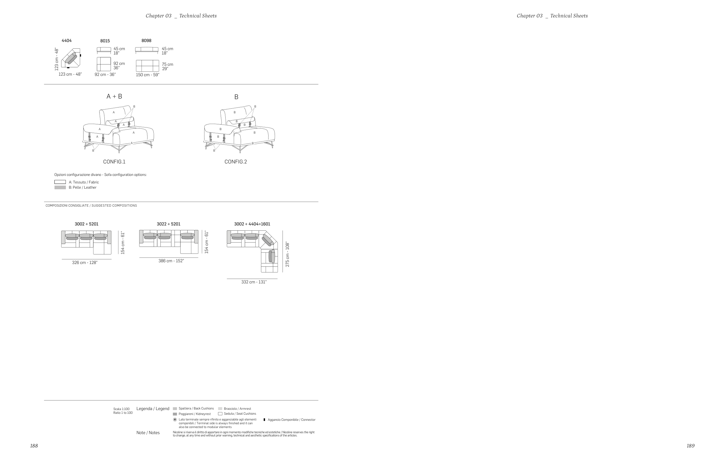 Opzioni configurazione divano - Sofa configuration options: