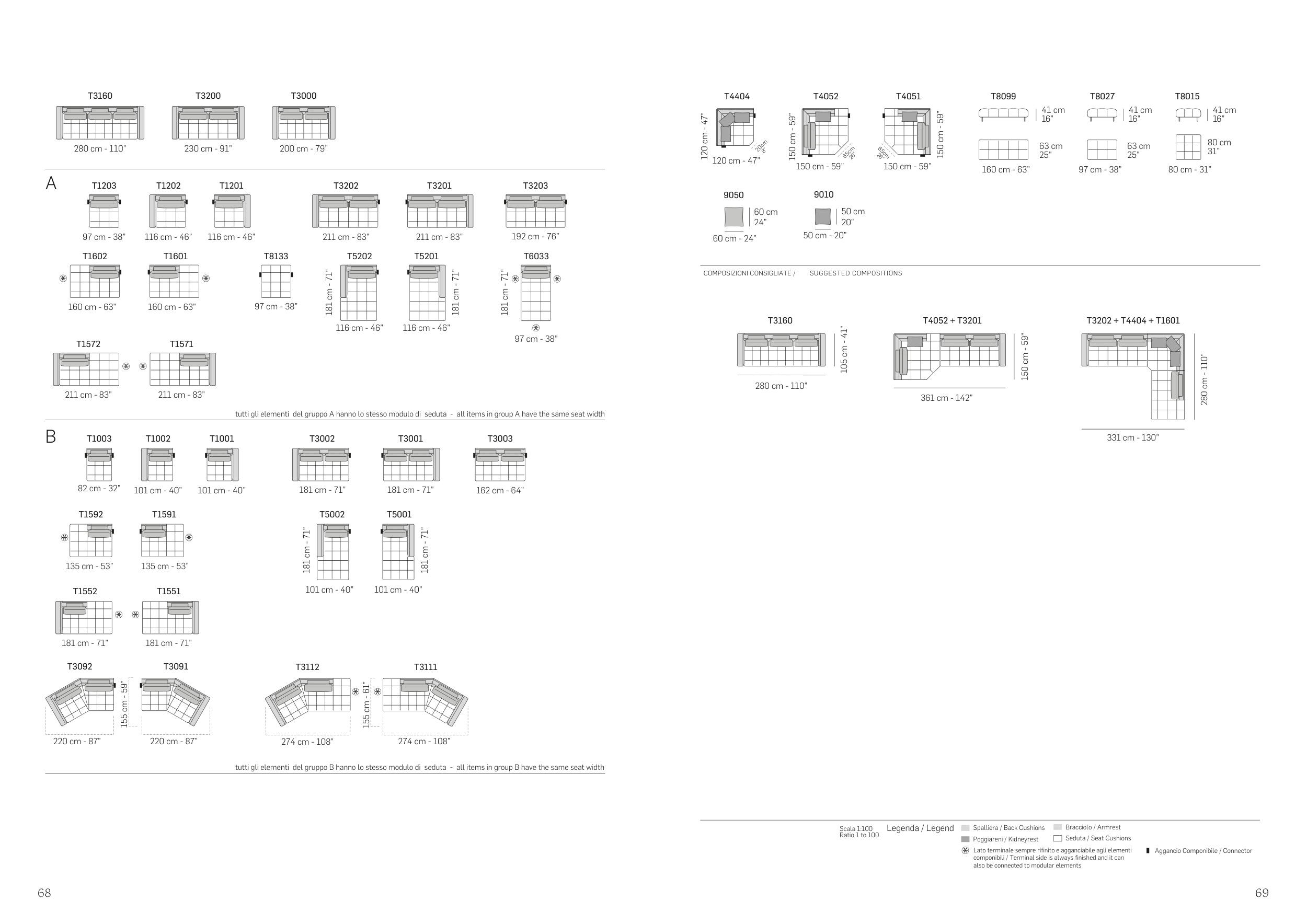 tutti gli elementi del gruppo B hanno lo stesso modulo di seduta - all items in group B have the same seat width