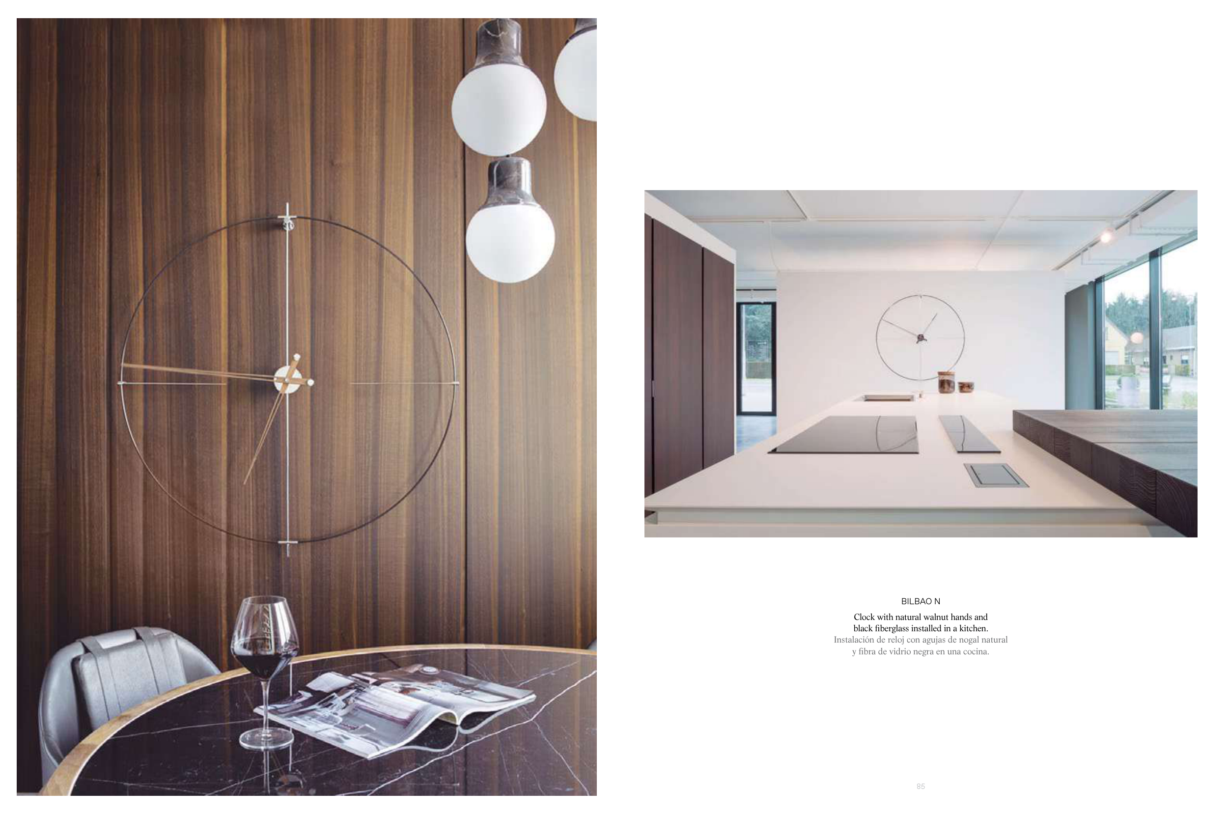 Instalación de reloj con agujas de nogal natural