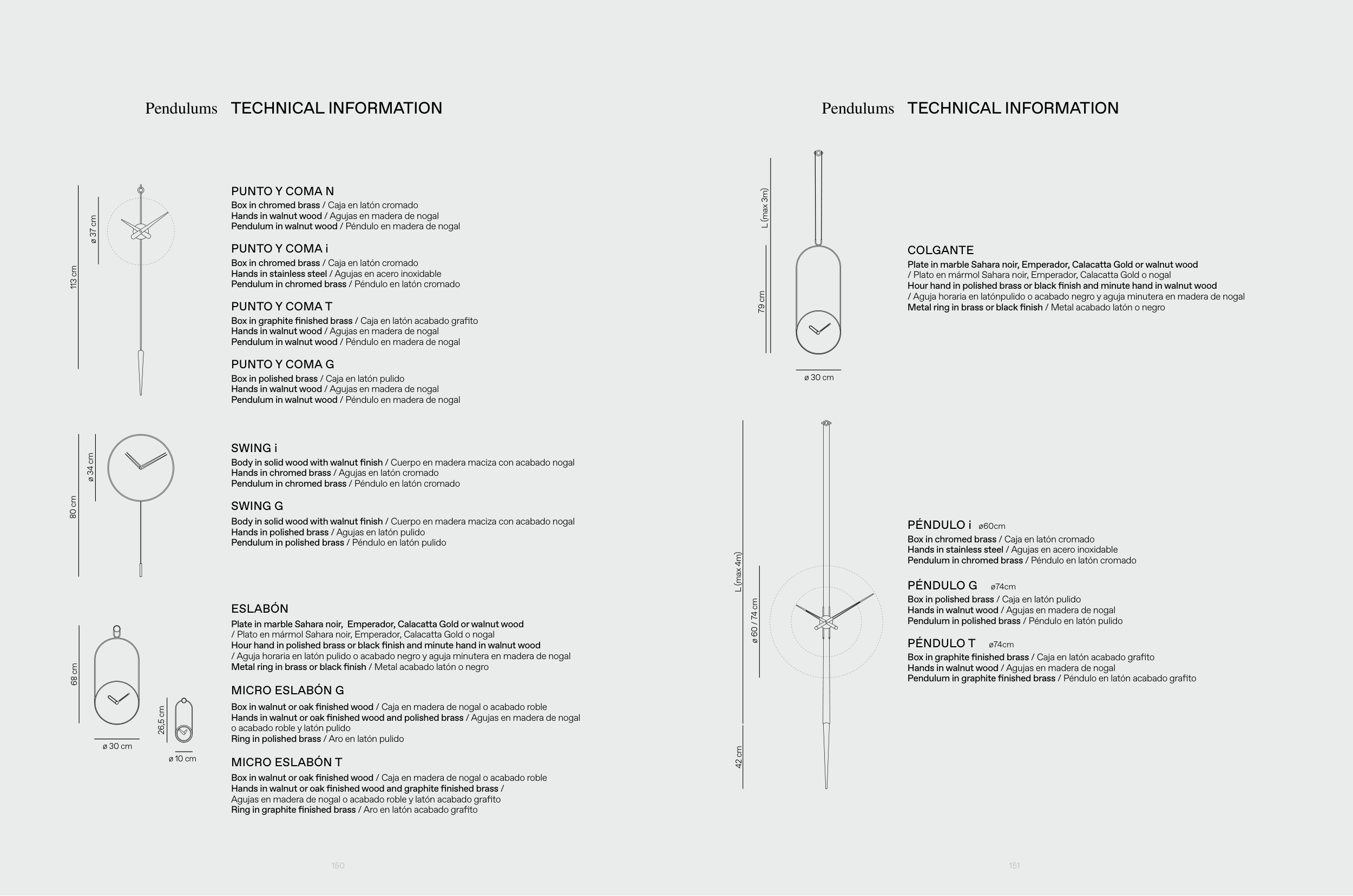 Hands in walnut or oak finished wood and polished brass / Agujas en madera de nogal