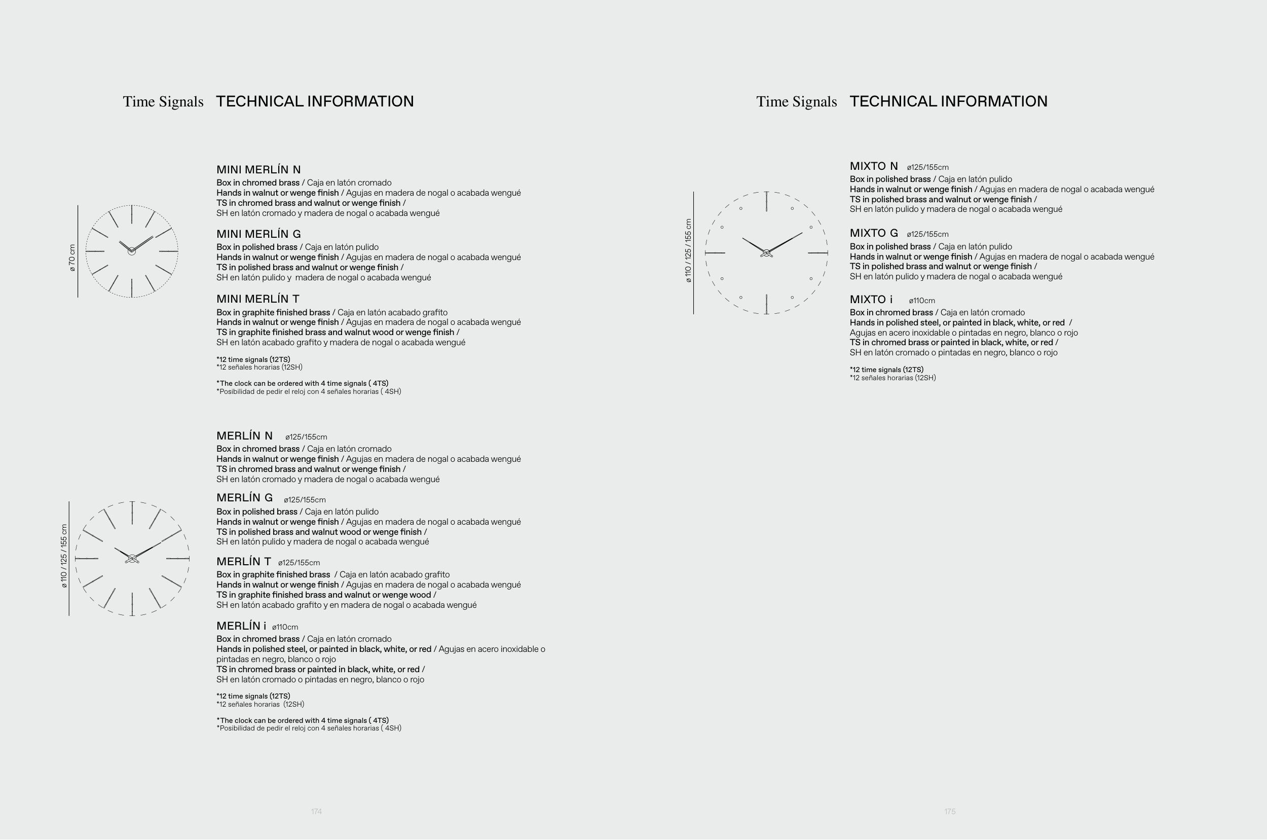 Hands in walnut or wenge finish / Agujas en madera de nogal o acabada wengué
