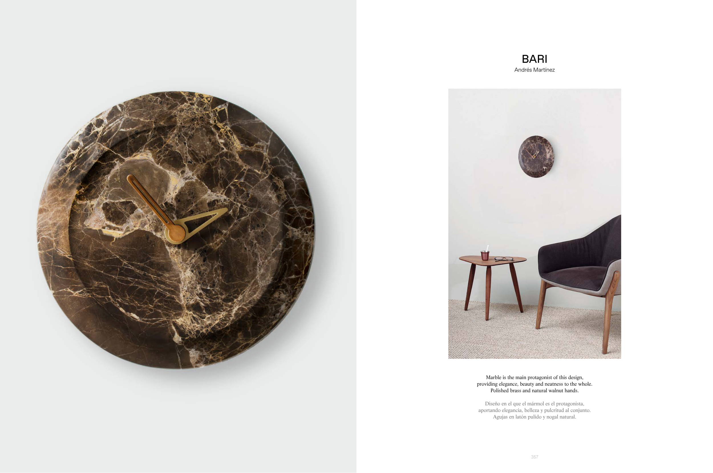 Agujas en latón pulido y nogal natural.