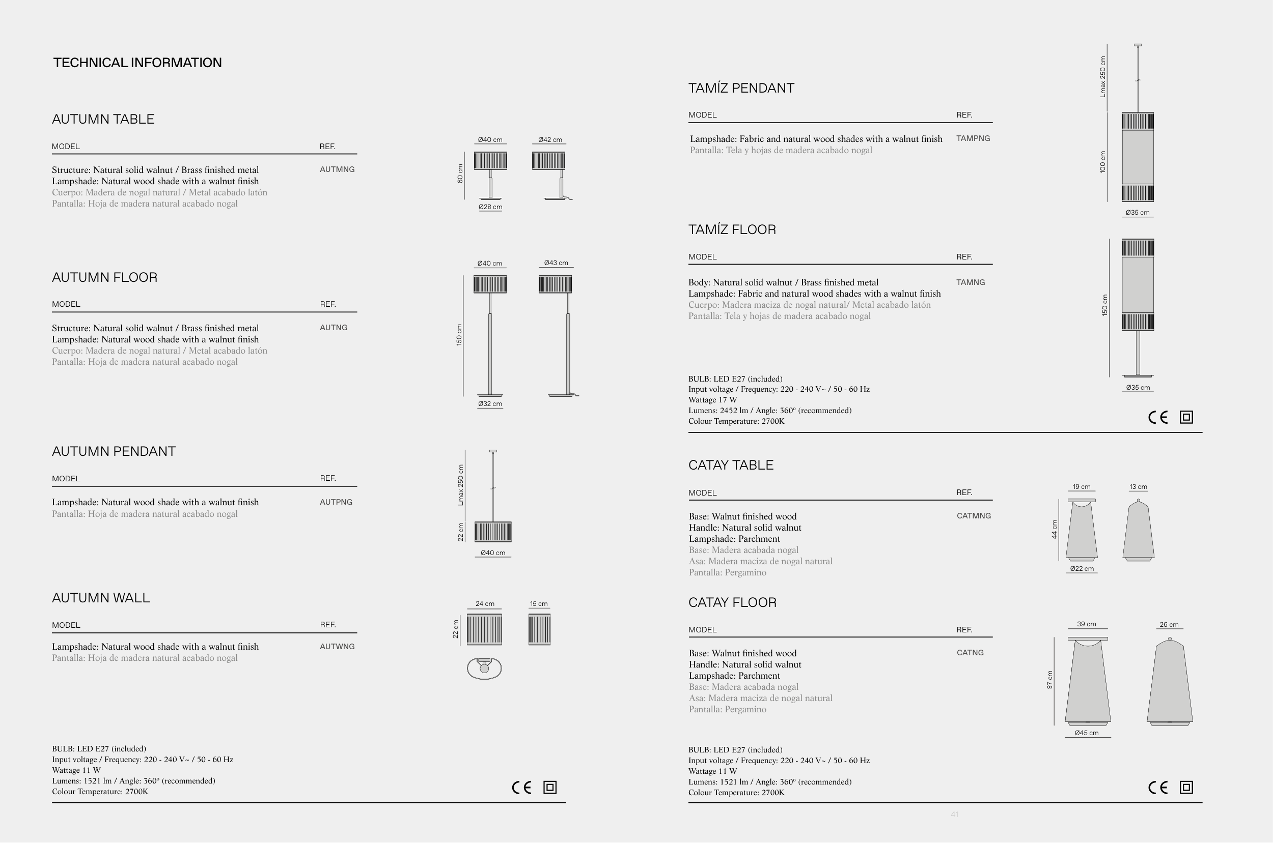 Body: Natural solid walnut / Brass finished metal