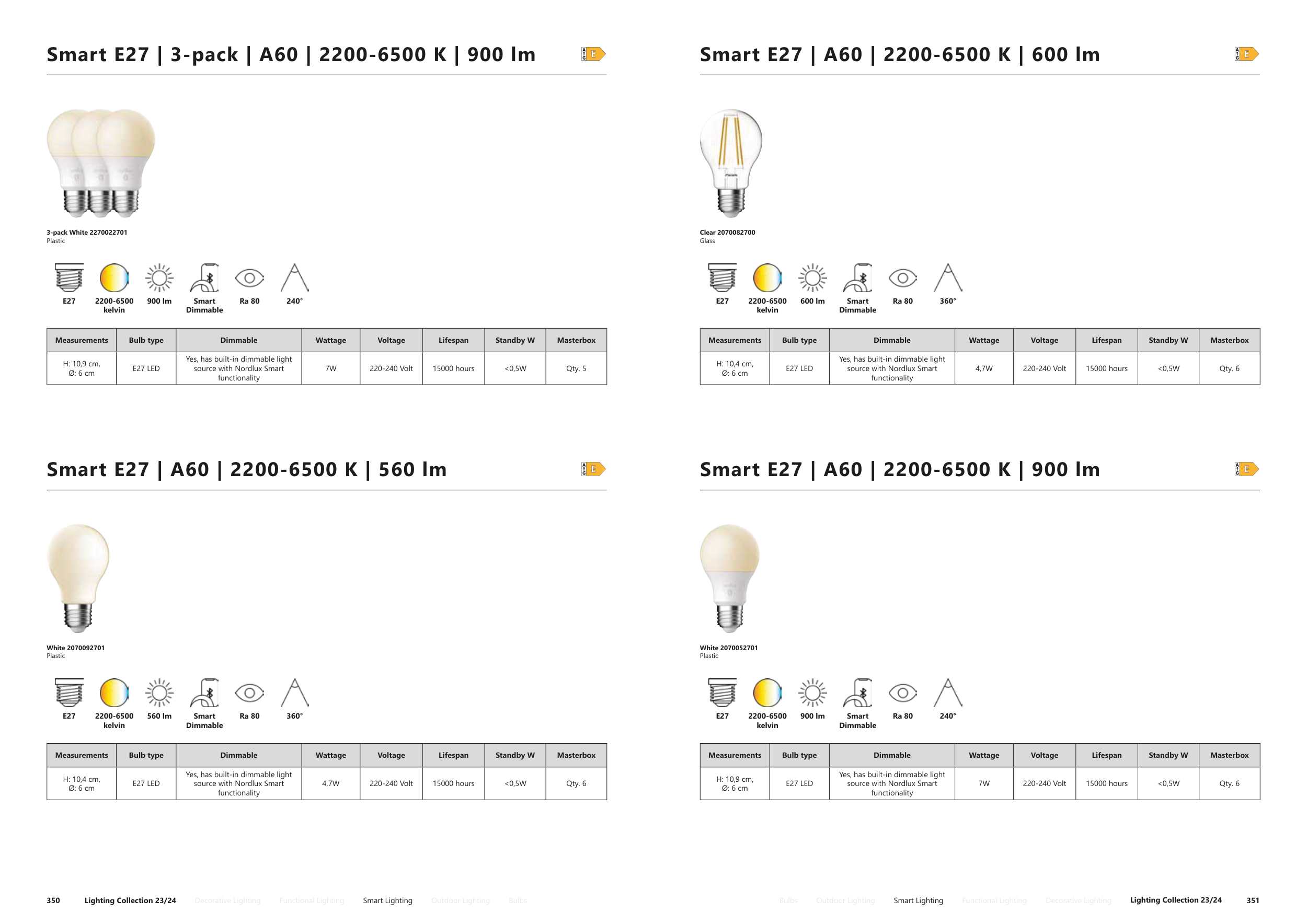 Smart E27 | 3-pack | A60 | 2200-6500 K | 900 lm