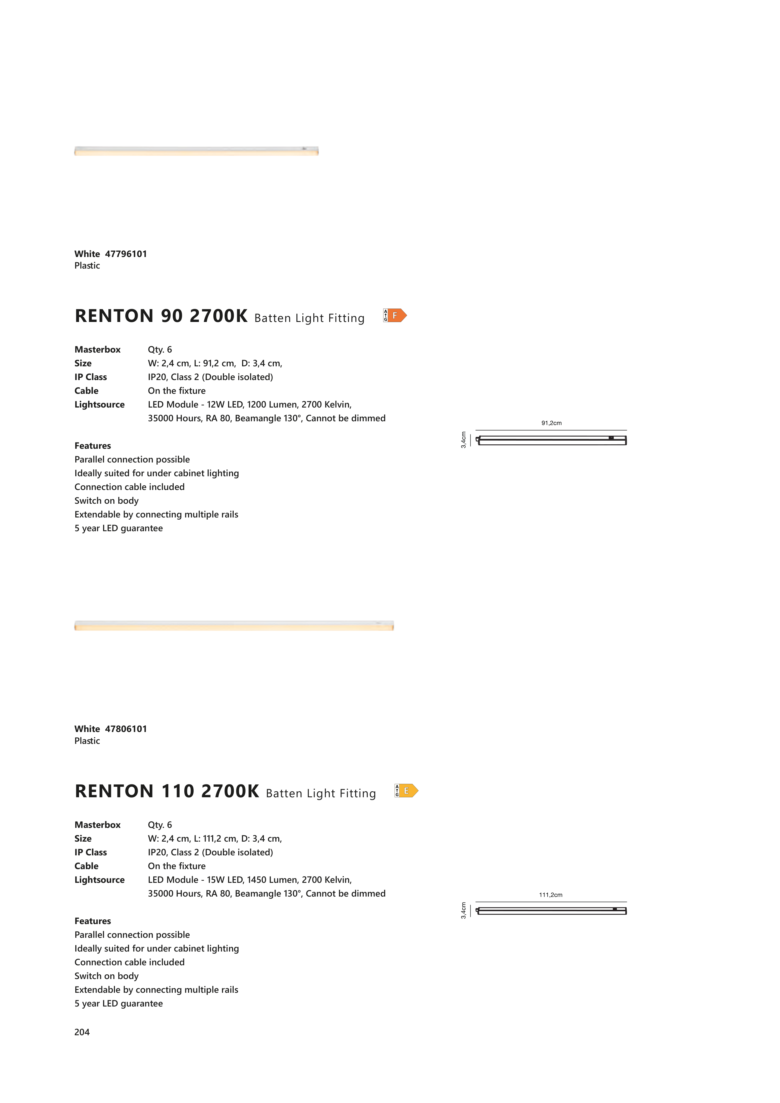 RENTON 110 2700K Batten Light Fitting