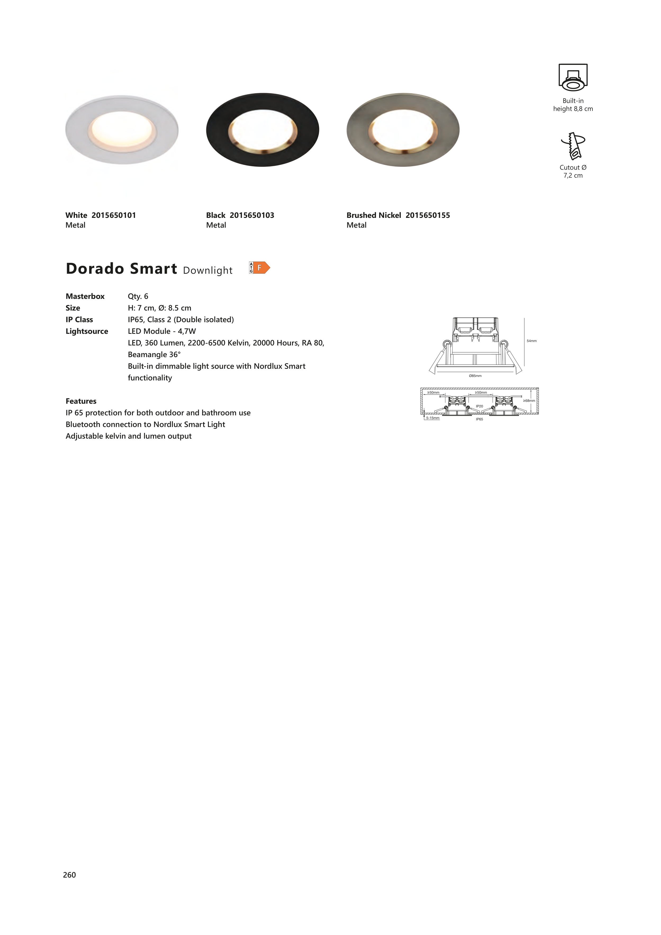 IP 65 protection for both outdoor and bathroom use