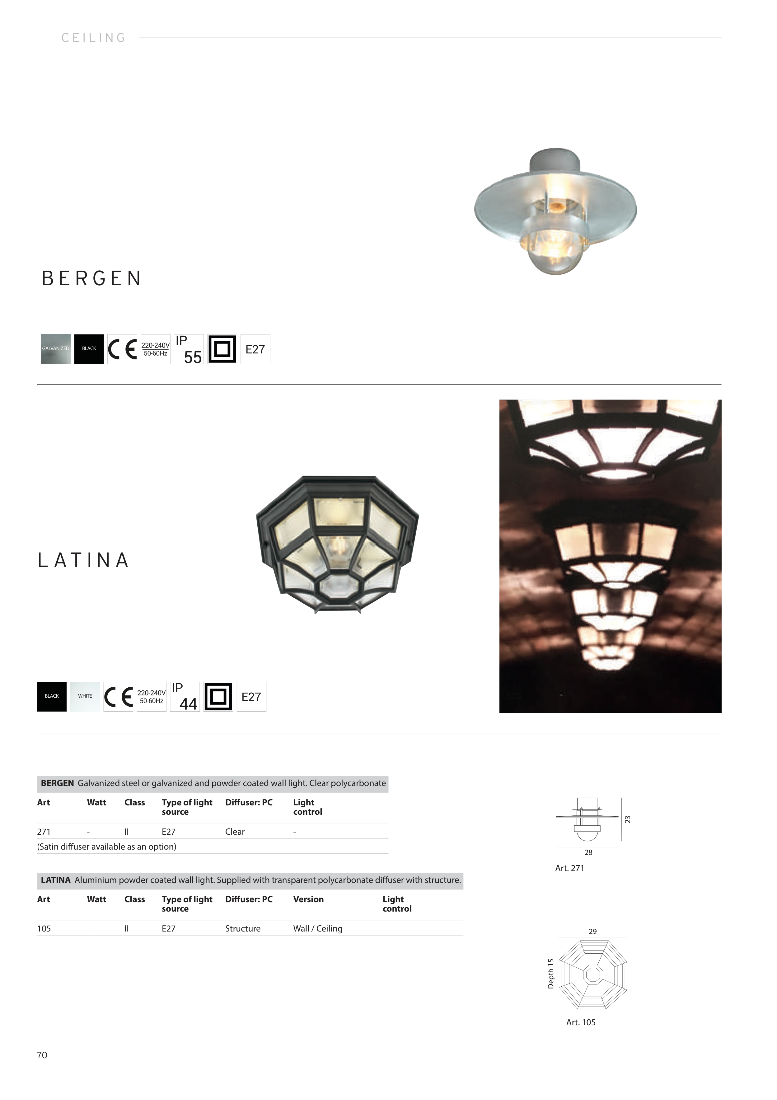 BERGEN Galvanized steel or galvanized and powder coated wall light. Clear polycarbonate