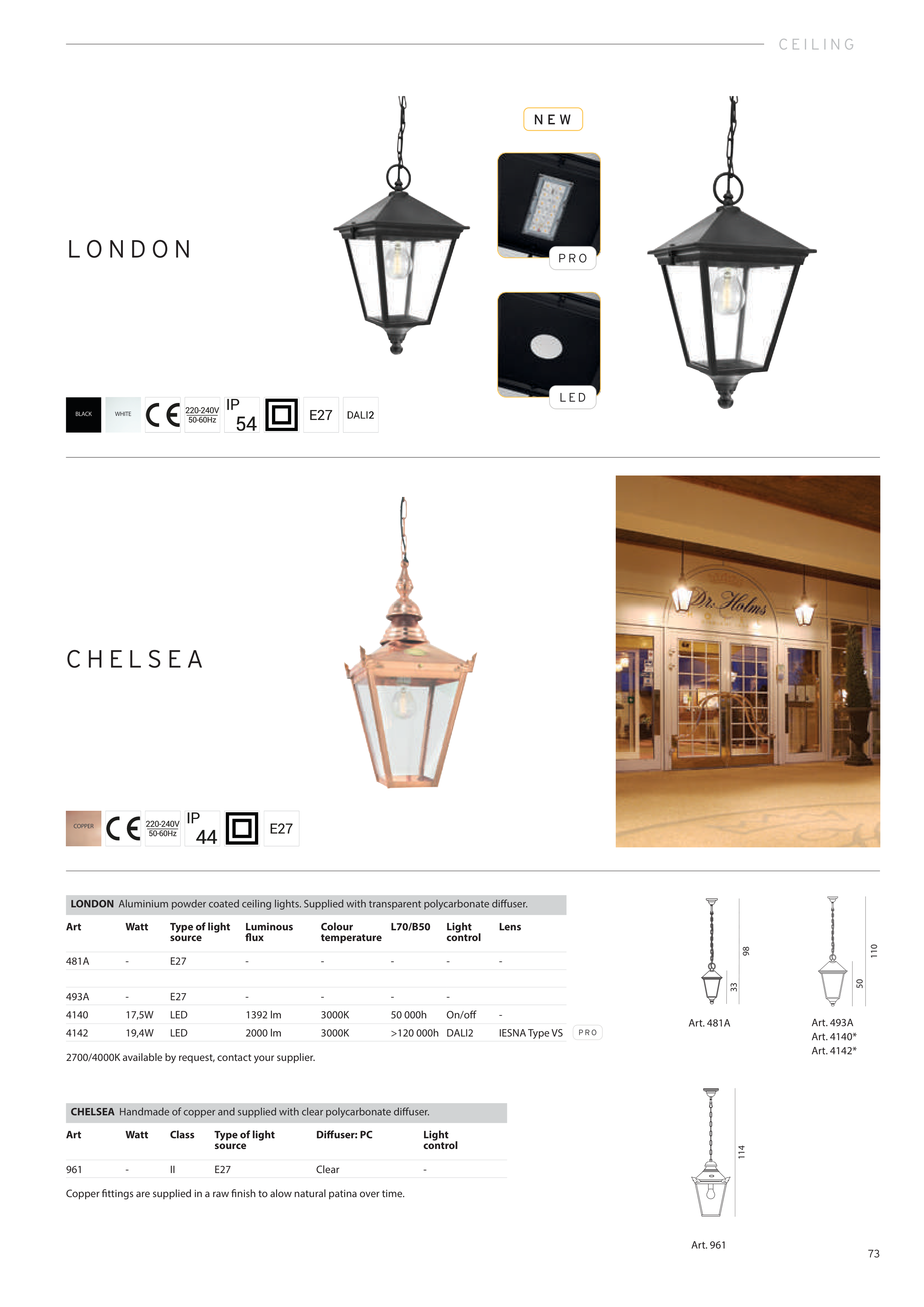 CHELSEA Handmade of copper and supplied with clear polycarbonate diffuser.