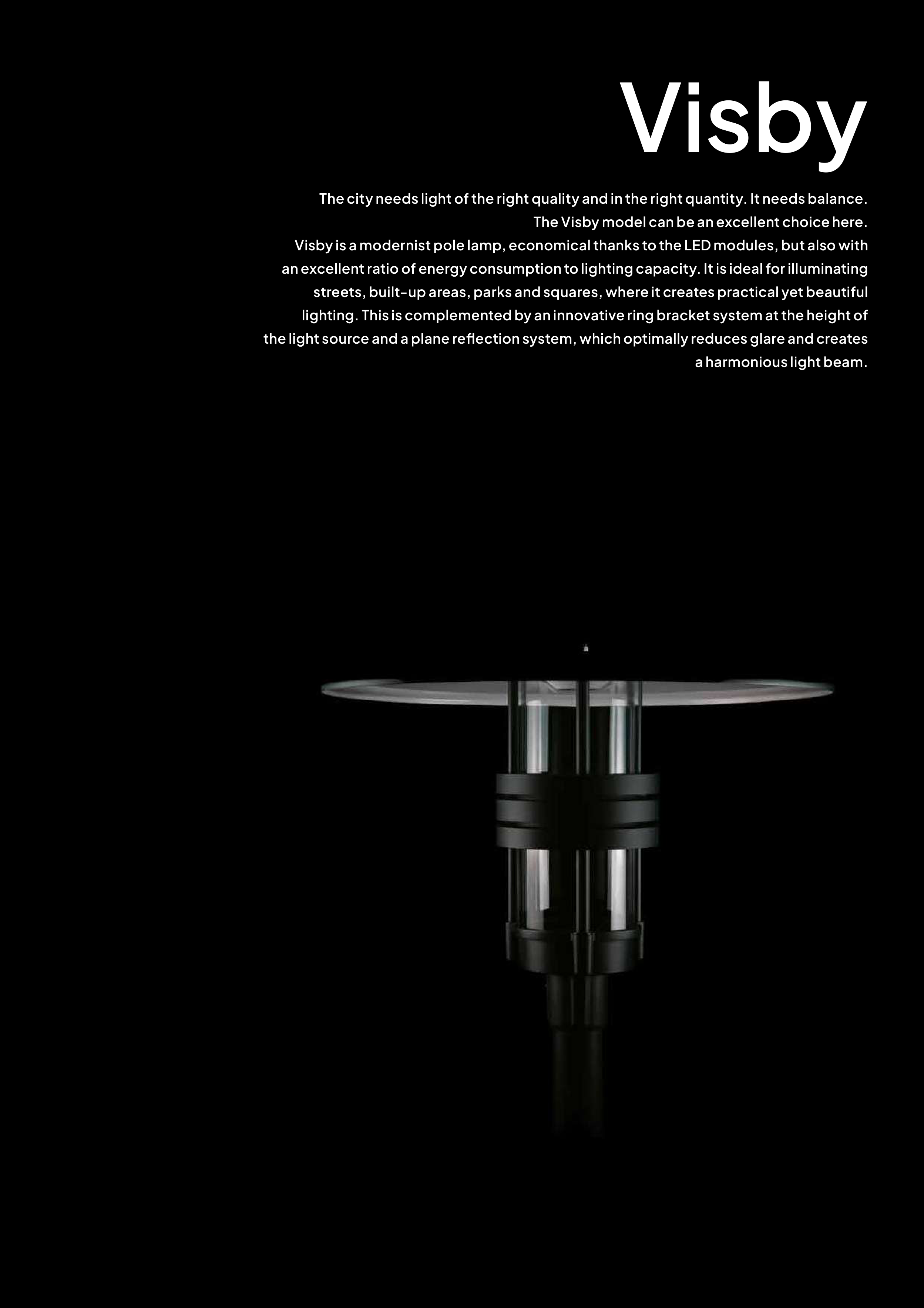 Visby is a modernist pole lamp, economical thanks to the LED modules, but also with
