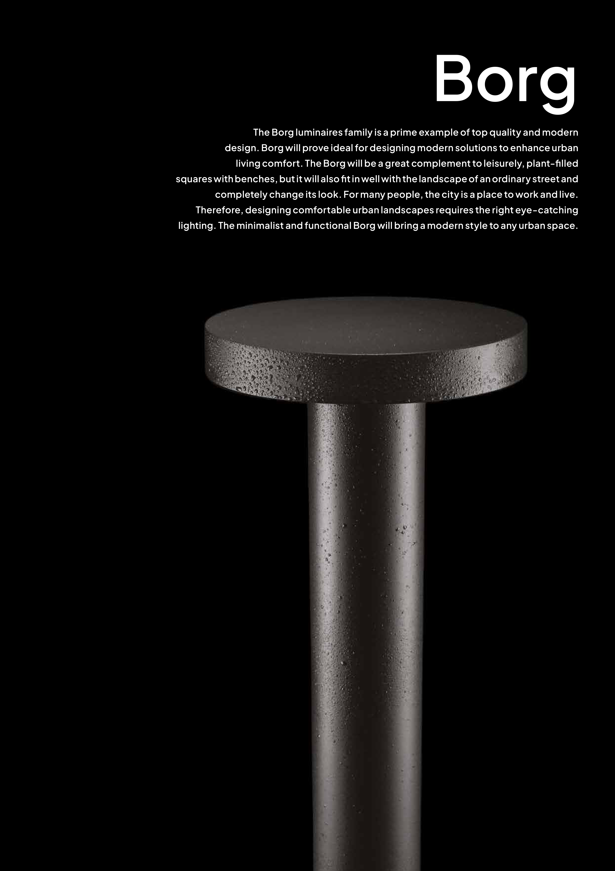 lighting. The minimalist and functional Borg will bring a modern style to any urban space.