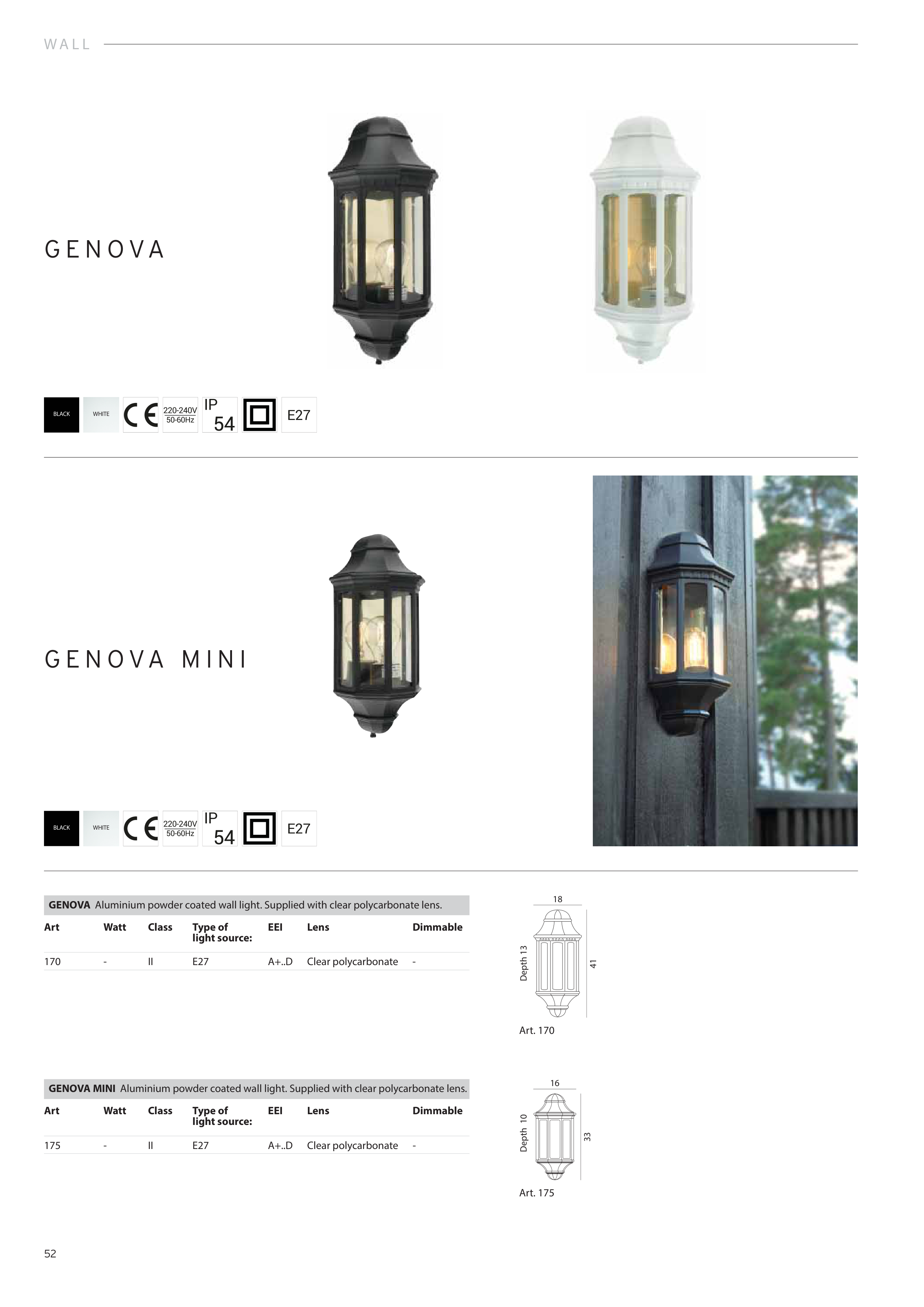 GENOVA Aluminium powder coated wall light. Supplied with clear polycarbonate lens.