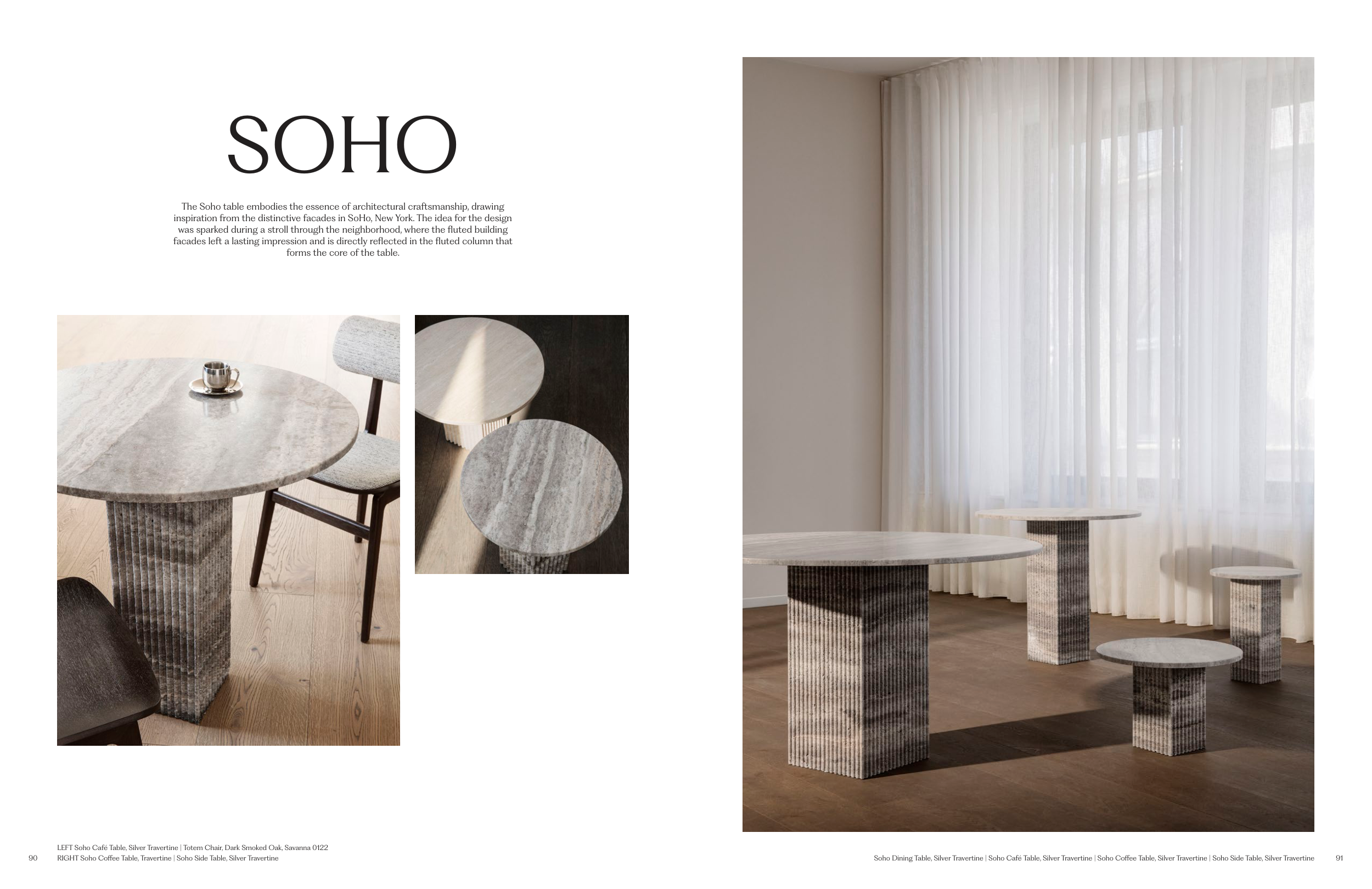LEFT Soho Café Table, Silver Travertine | Totem Chair, Dark Smoked Oak, Savanna 0122