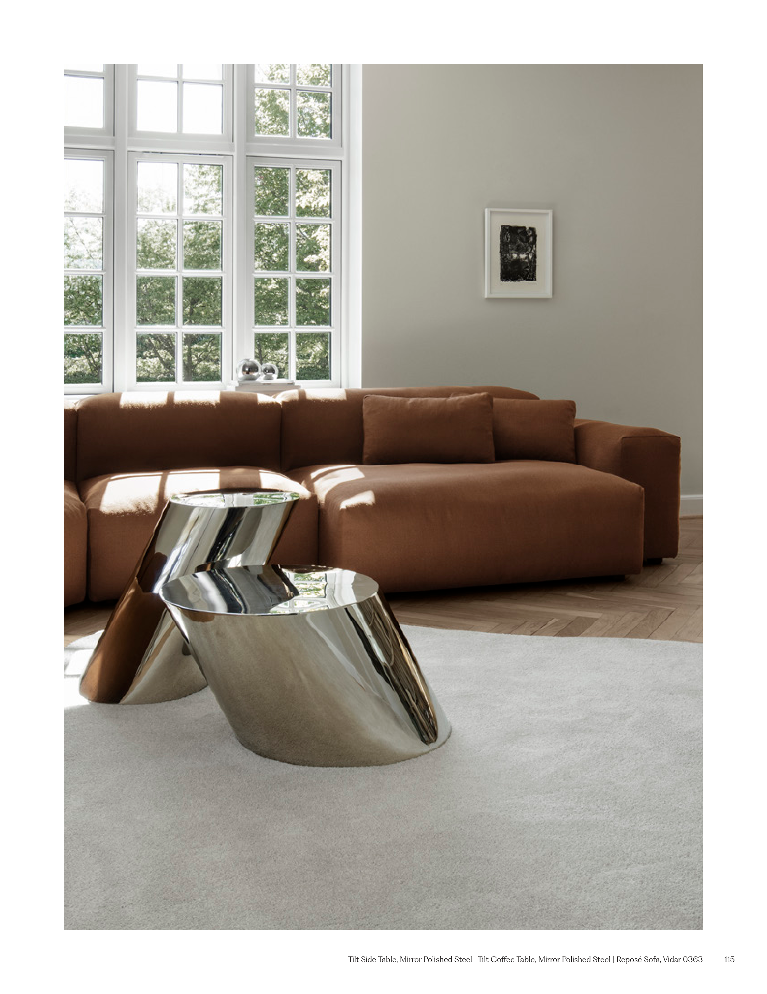 Tilt Side Table, Mirror Polished Steel | Tilt Coffee Table, Mirror Polished Steel | Reposé Sofa, Vidar 0363