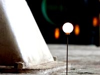 Snowball is a modern take on the classic Bauhaus lamp, revealing how the Futurist and Cubist styles of the Interwar period continue to appear contemporary today. The lamp’s polished steel stem is anchored to a streamlined base comprised of rectangular shapes, rising upwards to hold a lampshade made from frosted glass at the top. The lampshade rests in a disc-shaped plinth, balancing the strict angles of the base with a perfect, round globe that emanates soft light.