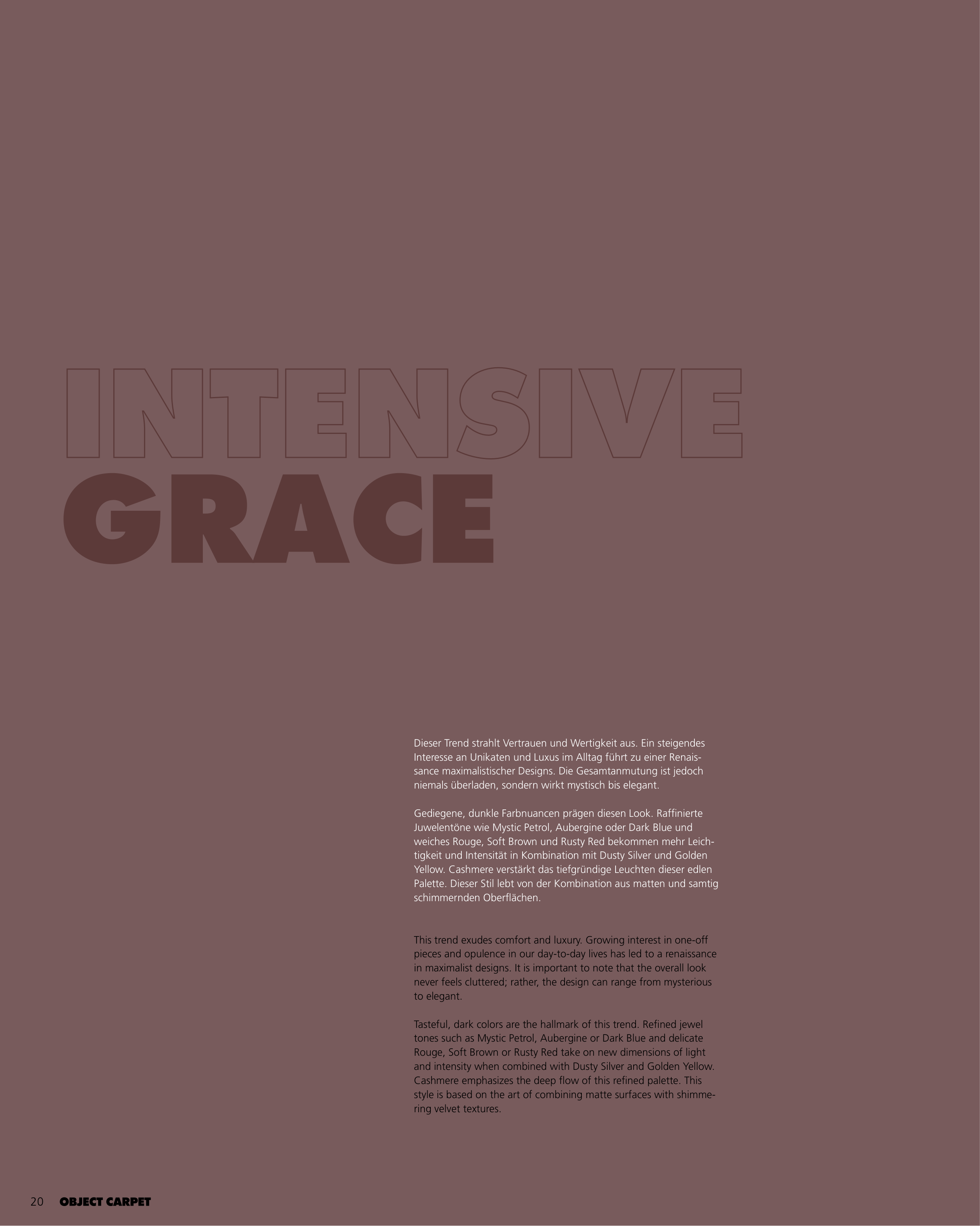 tones such as Mystic Petrol, Aubergine or Dark Blue and delicate