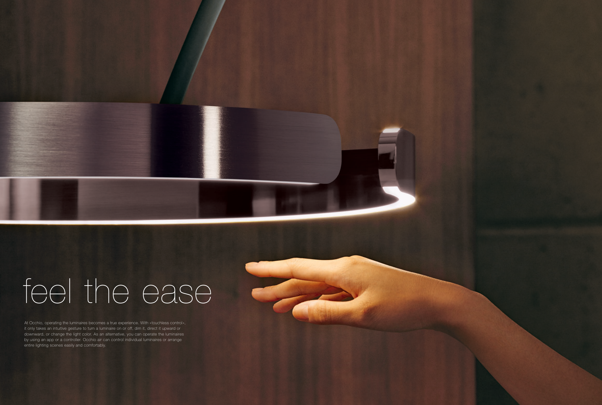 At Occhio, operating the luminaires becomes a true experience. With » touchless control «,
