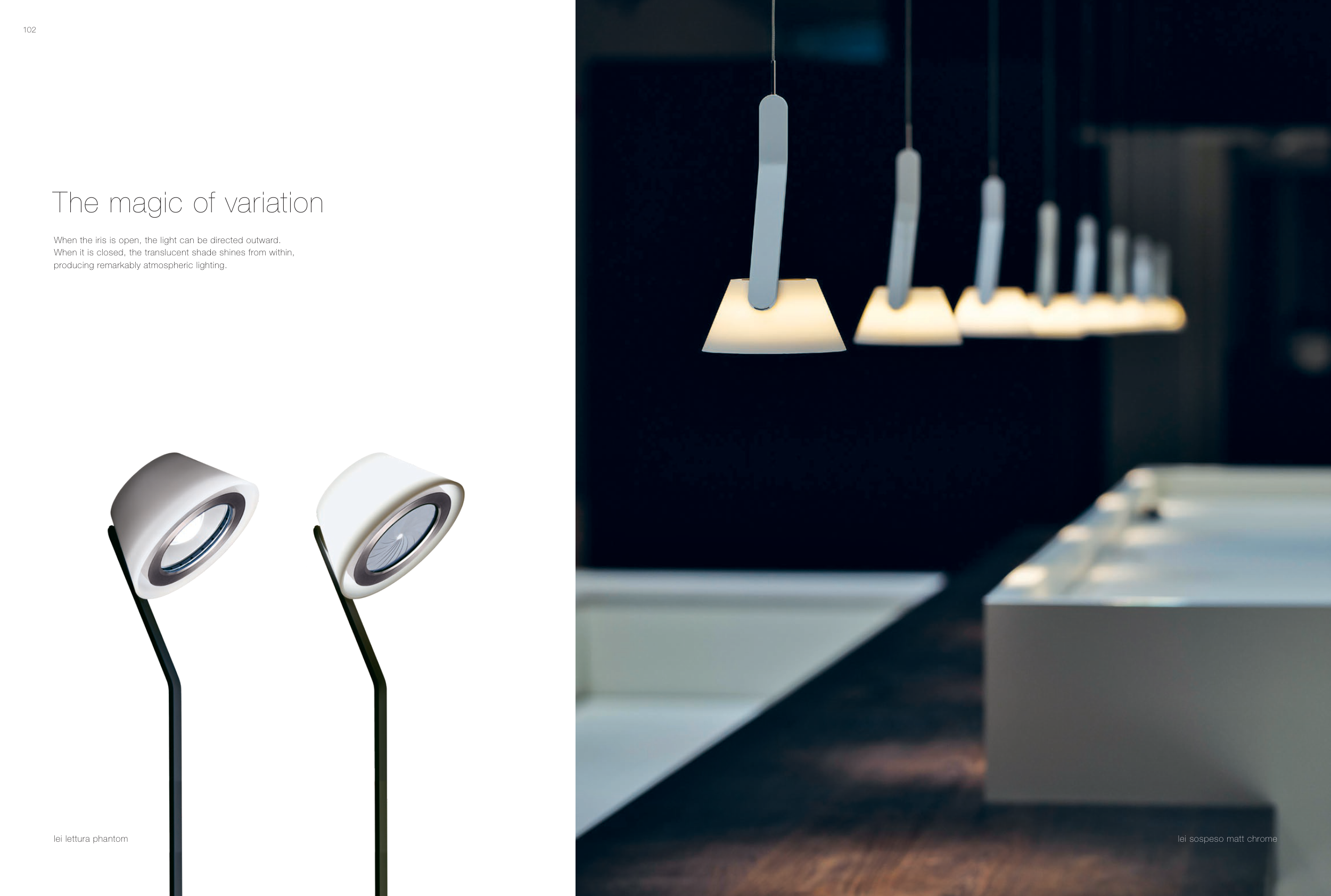 When it is closed, the translucent shade shines from within,