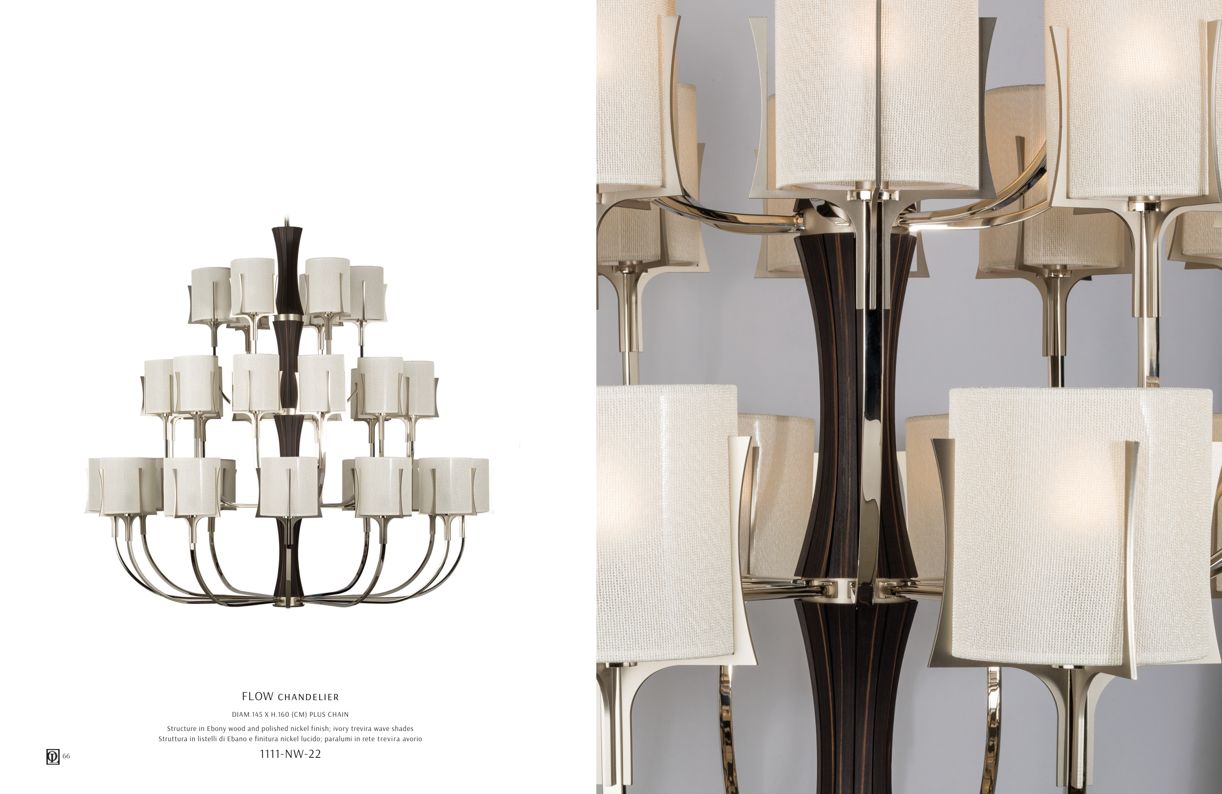 Structure in Ebony wood and polished nickel finish; ivory trevira wave shades